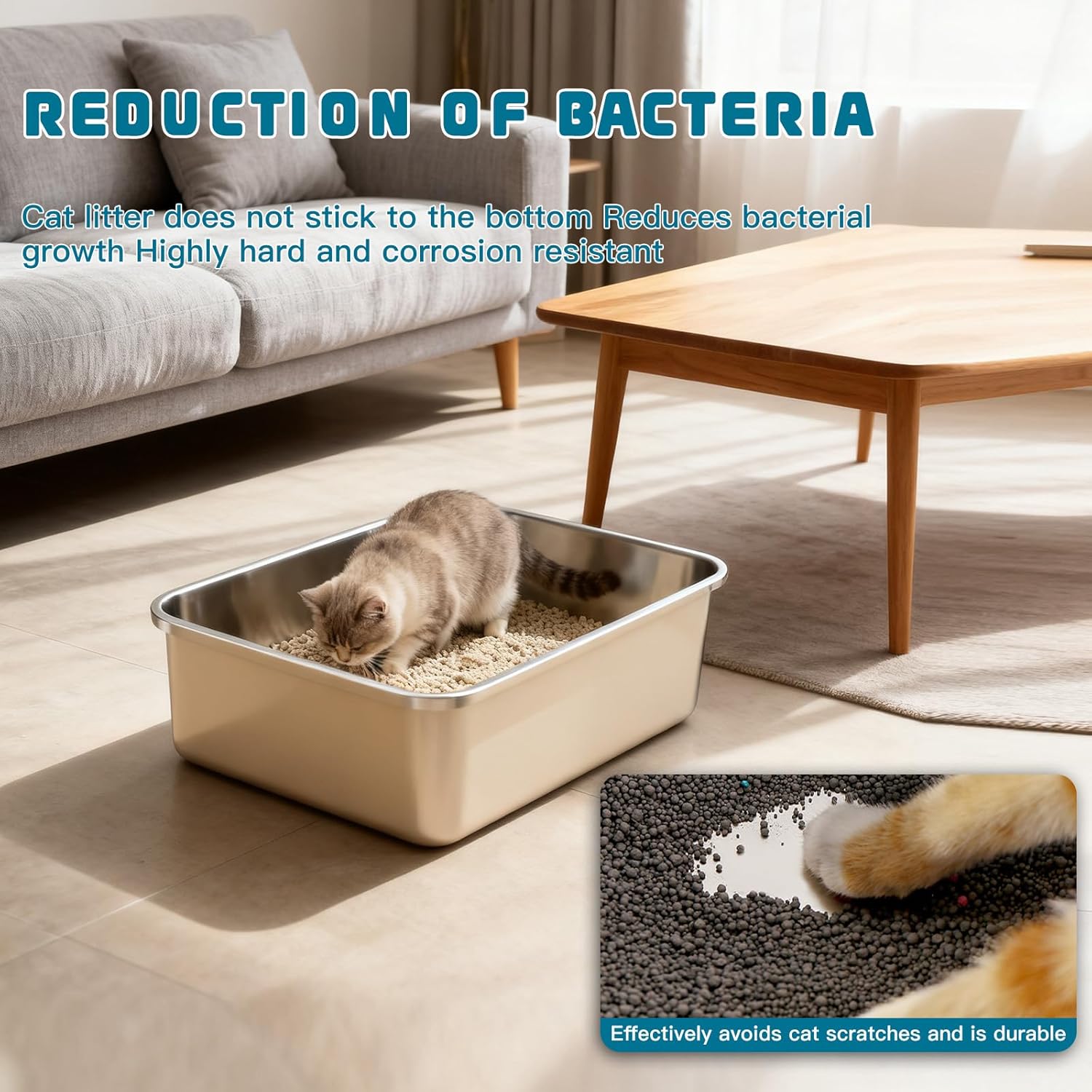 【Durable & Rust-Resistant】Constructed from heavy-duty stainless steel, this litter pan won’t crack, bend, or rust over time. A long-lasting replacement for plastic trays.