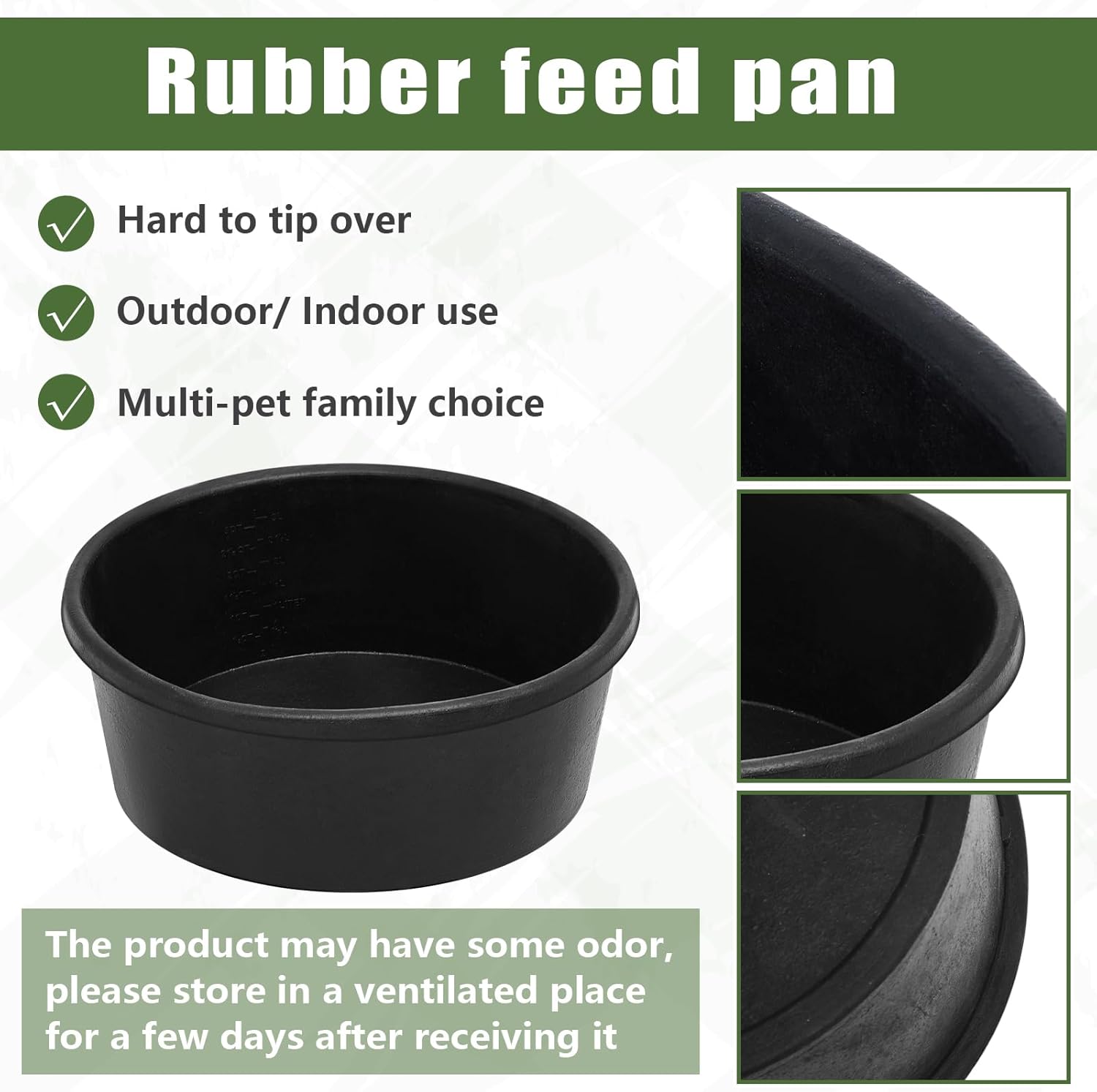 Proper Dimension to Use: with dimensions of approximately 10.6 x 4.1 inches/ 27 x 10.5 cm, this rubber bucket is ideally sized for easy handling and efficient feeding; Experience convenience and ease when using these pans. Warm tip: The rubber may have some odor, please store in a ventilated place for a few days after receiving it