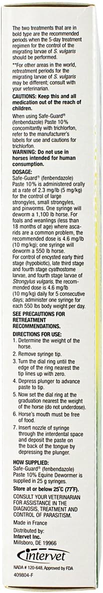 Customers find the dewormer effective, with one mentioning it works quickly to eliminate parasites. Moreover, the product receives positive feedback for its quality and value for money, with one customer noting it’s the cheapest option for all mammal use. Additionally, they appreciate its effectiveness in preventing parasites, with one customer sharing how it helped their horses maintain a regular worming schedule.