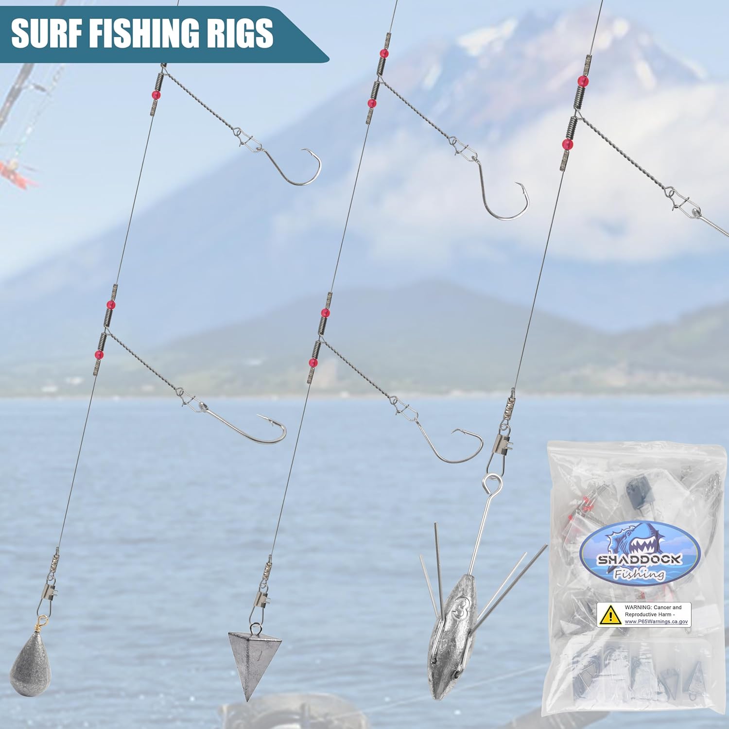 Shaddock Fishing saltwater surf fishing rigs tackle kit is a simple and effective saltwater fishing gear designed specifically for surfing fishing. Whether you are fishing on the beach, on a boat in the ocean, using a surfing rod and reel, or on a dock, you can easily catch more fish. This will be a fun gift for fishing enthusiasts!