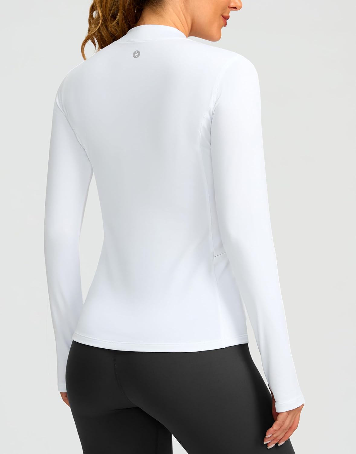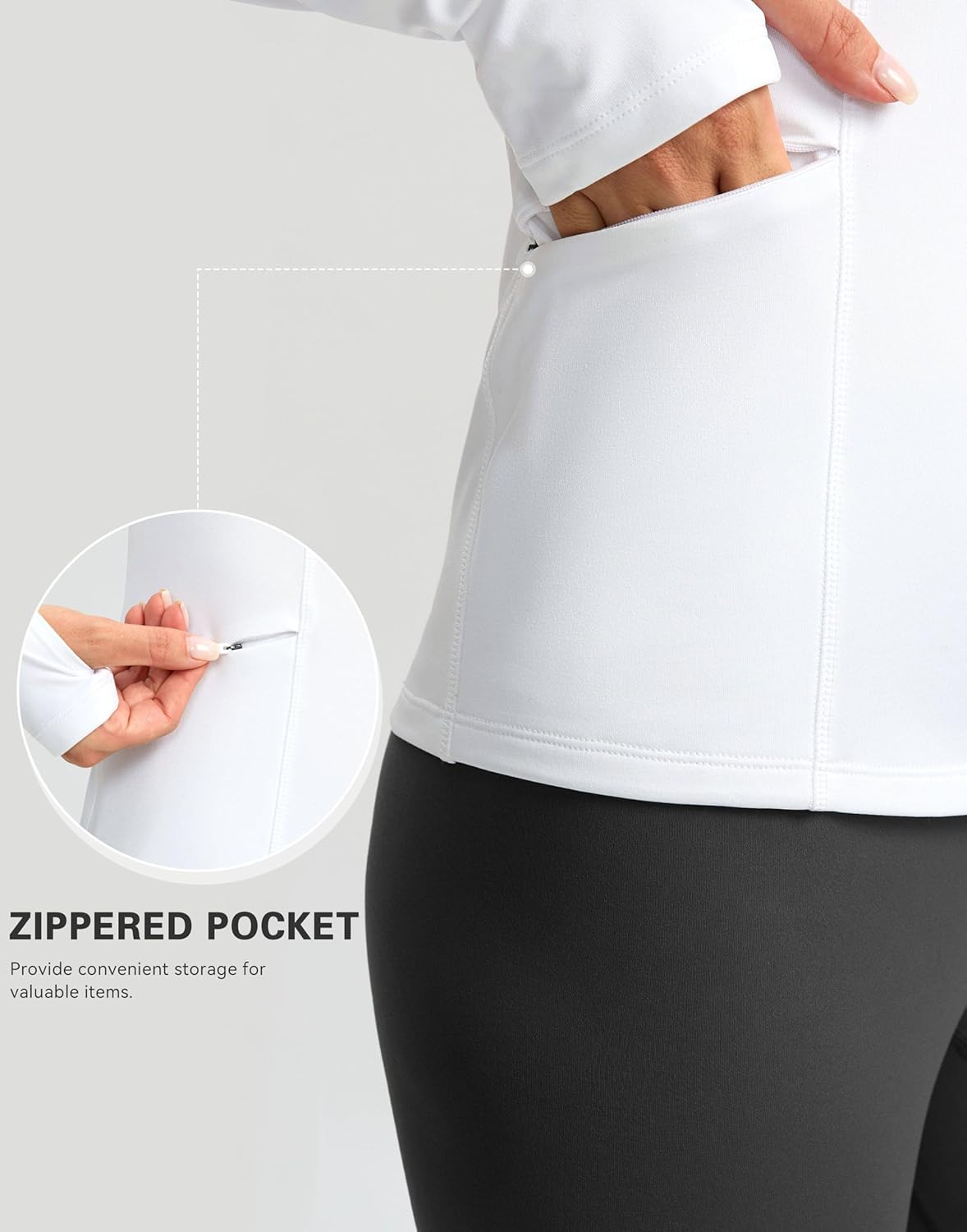 SANTINY Long Sleeve Thermal Shirts for Women Fleece Mock Neck Tops Winter Workout Running Gear with Zipper Pockets