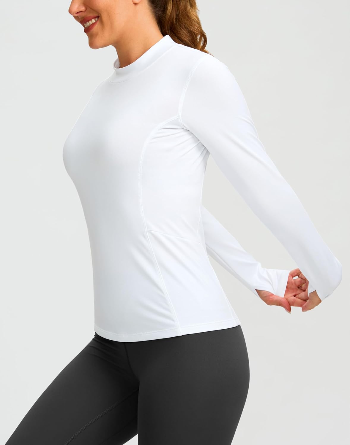 8 reviews for SANTINY Long Sleeve Thermal Shirts for Women Fleece Mock Neck Tops Winter Workout Running Gear with Zipper Pockets