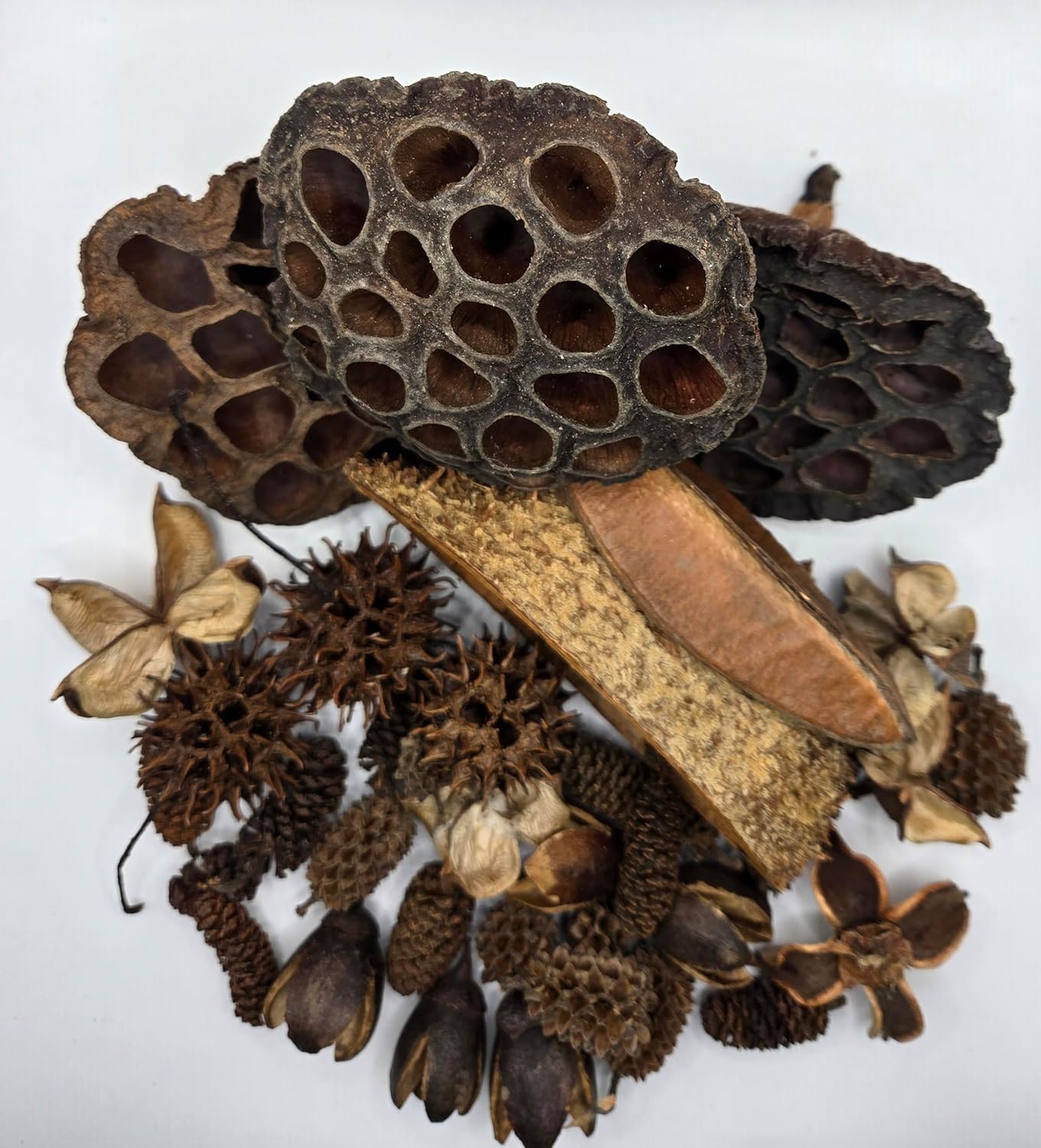 SIZE VARIETY: Collection includes assorted sizes of seed pods, providing multiple design options for your display. This 38-piece variety pack may vary slightly from the photos depending on the availability of seed pods.