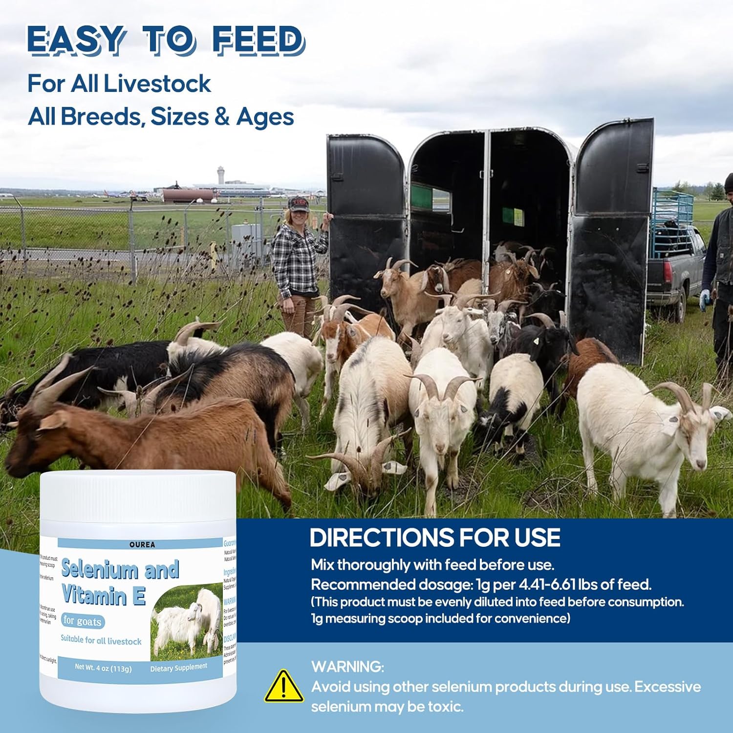 Easy to Mix with Feed: Say goodbye to messy gels or complicated dosing. Made with natural organic selenium yeast and natural vitamin E. This selenium supplements fine powder mixes easily with feed, ensuring even distribution and reliable ingestion by goats. No hassle, no waste—it’s digested naturally by your animals, without resistance, giving you peace of mind and saving valuable time on your daily farm work.
