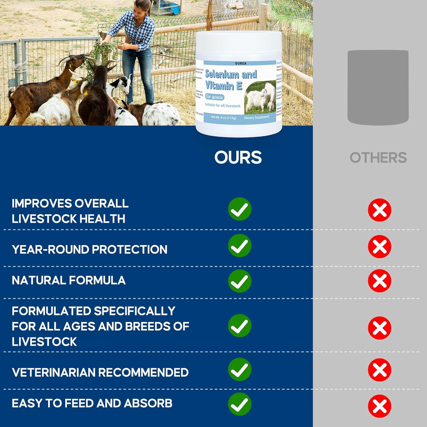Selenium & Vitamin E Powder for Goat, Selenium Supplement for Goats, Immune System, Muscle Support & Relieve Stress Response, Selenium, Vitamin E Supplements, Goat Minerals, Suitable for All Livestock