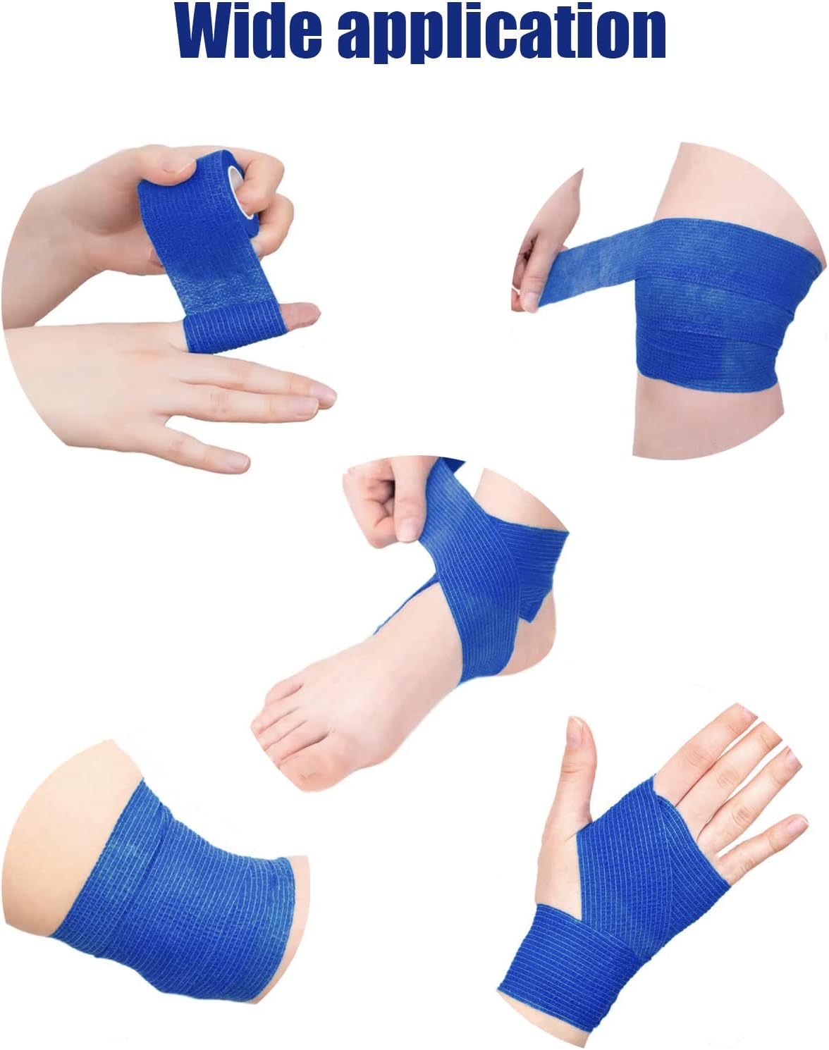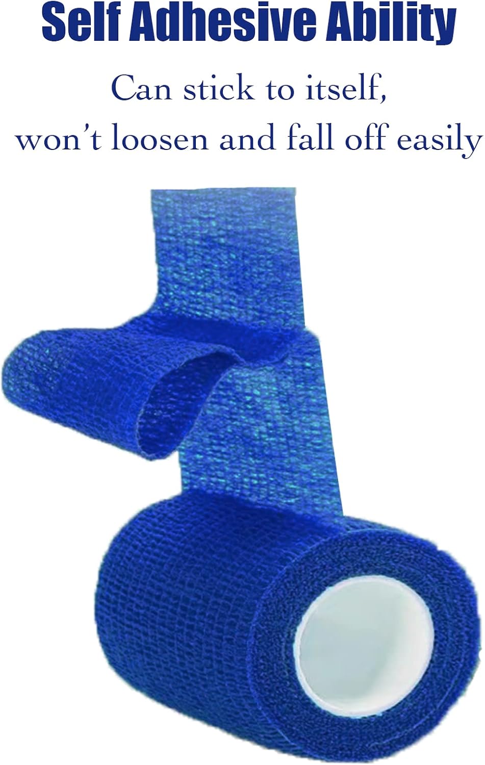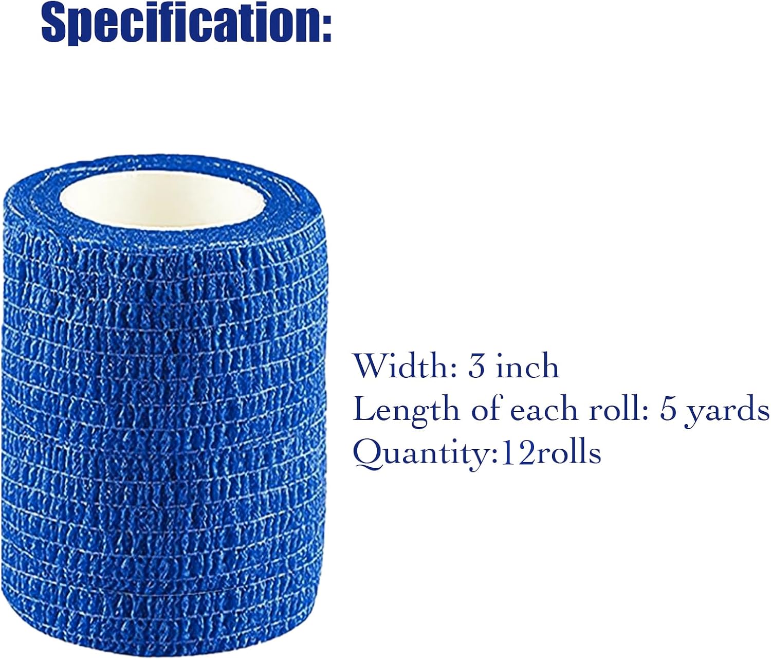 Self Adhesive Bandage Wrap, 3 Inch 5 Yards Athletic Elastic Non Woven Cohesive Tape, for Stretch, Sport, First Aid Medical, Wrist, Ankle Sprains, Swelling and Vet Wrap Supplies (12 Pack)