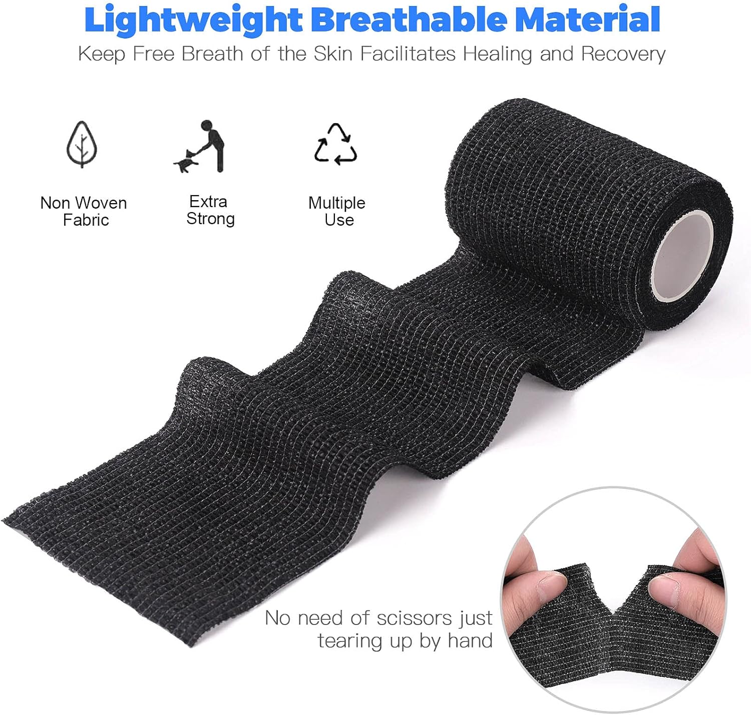 【Materials】: The self Adhesive Bandage Wrap was made of elastic porous non-woven fabrics, lightweight, breathable, and comfortable, provide good ventilation so the skin can breathe underneath tape, which is better for healing.