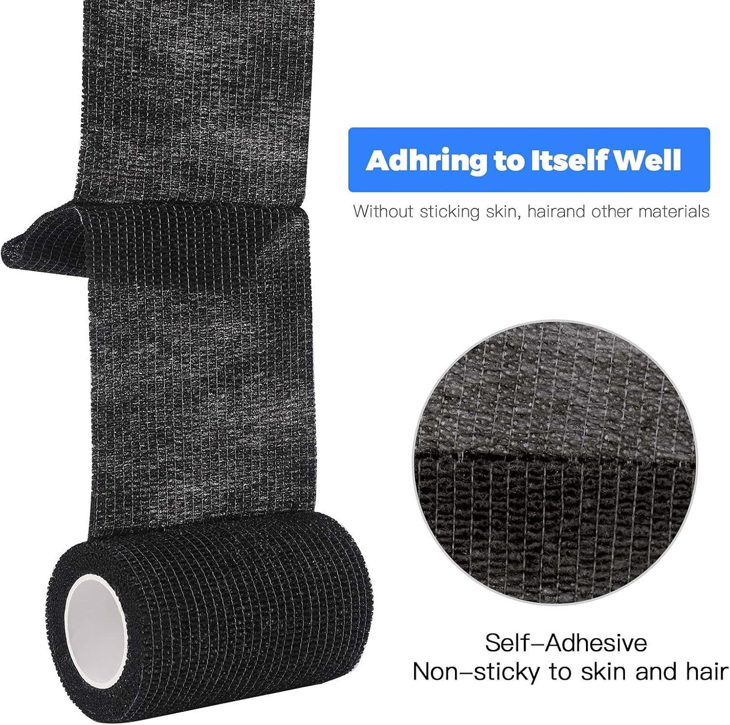 【Strong Self-adhesive】:The Self-adhering sports wrap provides a strong and comfortable support while sticking to itself, it will not easy to loosen and fall off, but not adhere to hair or skin.