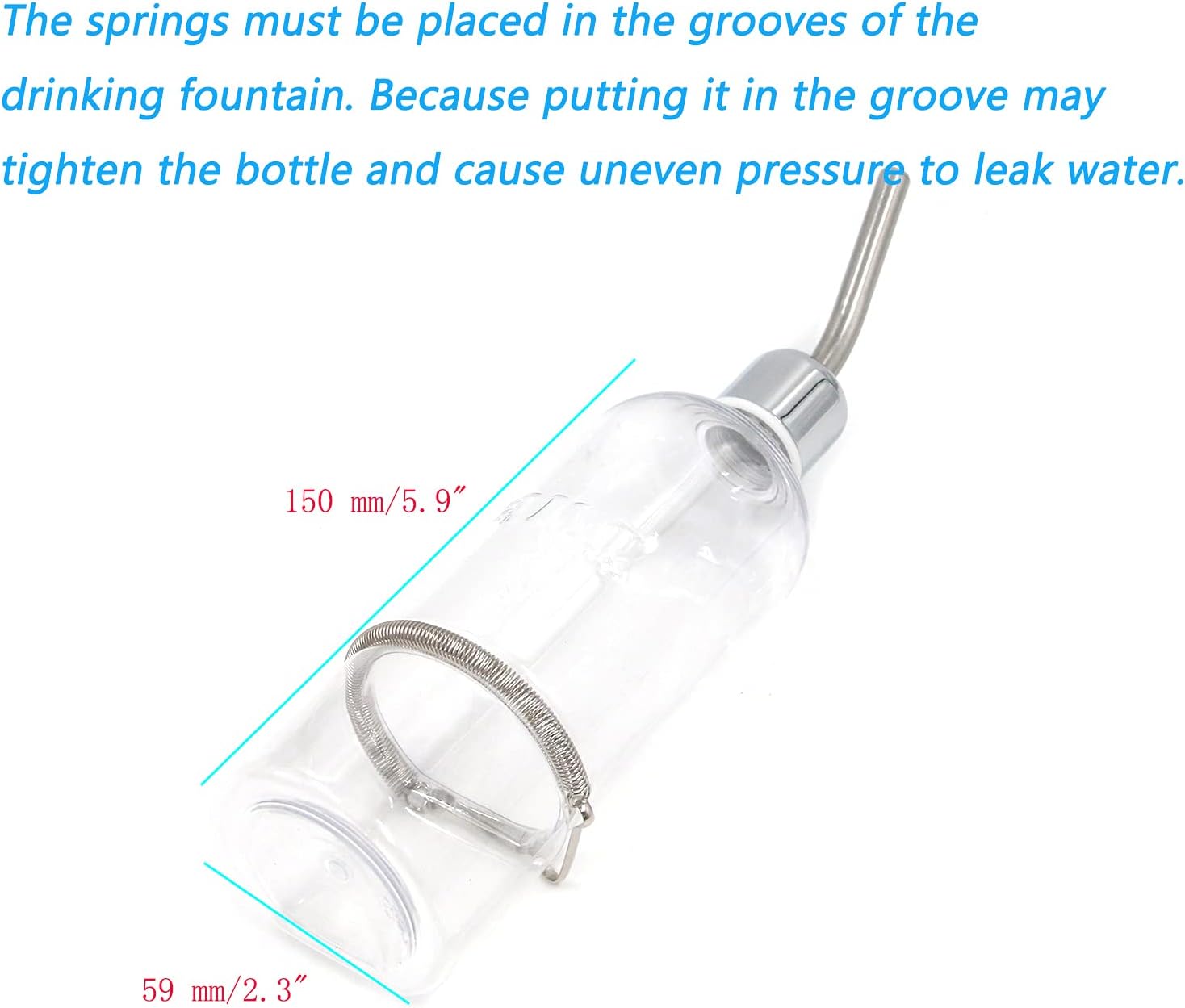【NOTE】The fixing springs and hooks must be hung in the corresponding positions. For example, the springs must be placed in the grooves of the drinking fountain. Because putting it in the groove may tighten the bottle and cause uneven pressure to leak water.