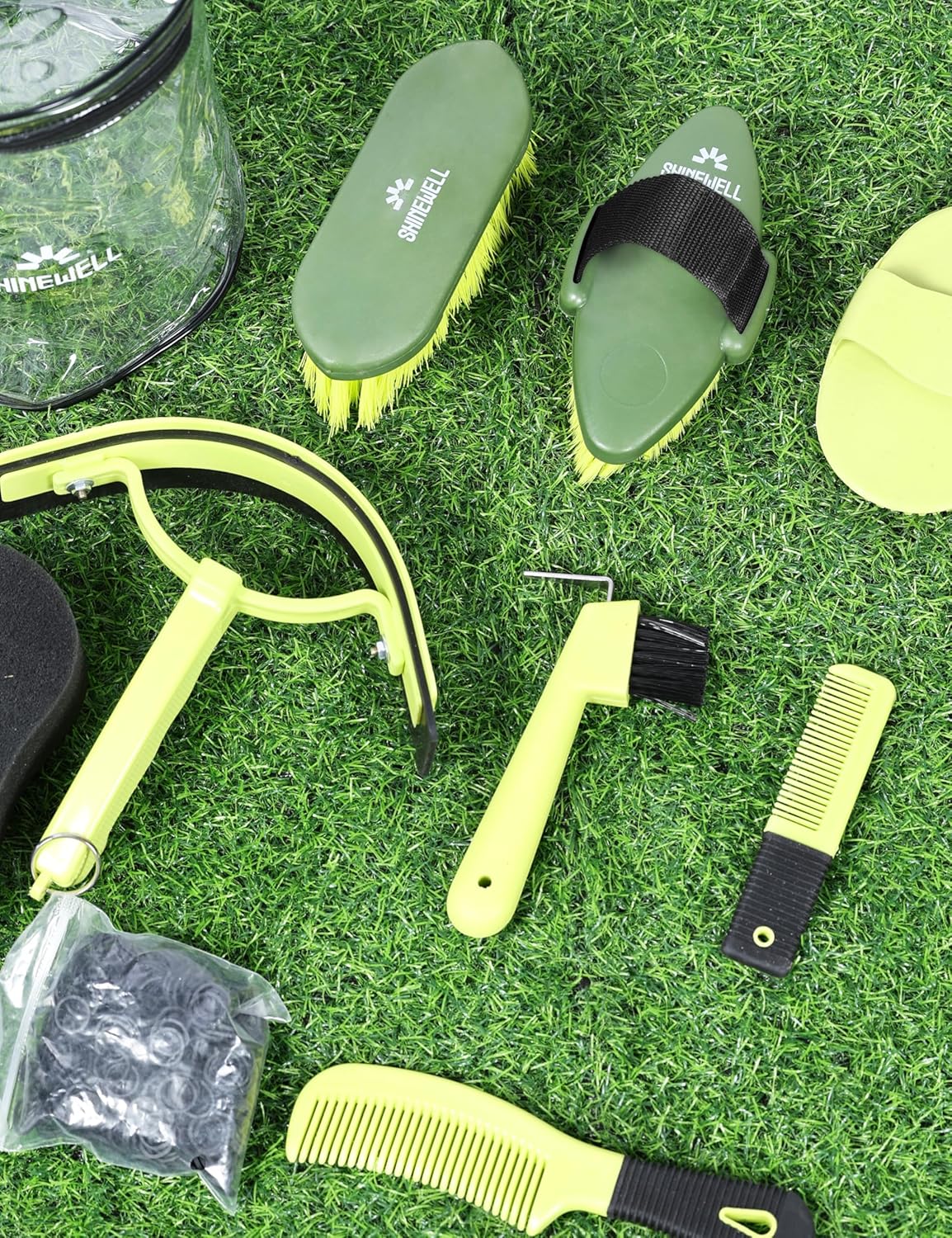 8 reviews for Shinewell Horse Grooming Brushes Kit 9 pieces with Organizer Bag Grooming Care Series Horse Brush Sets Green
