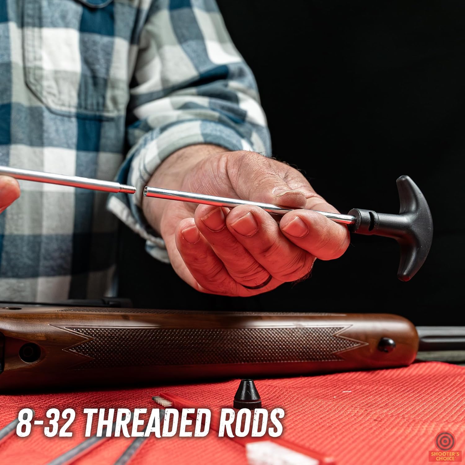 Quality Components: Aluminum rod set with female 8/32 threaded end and swivel handle for easy cleaning that won’t damage your gun.