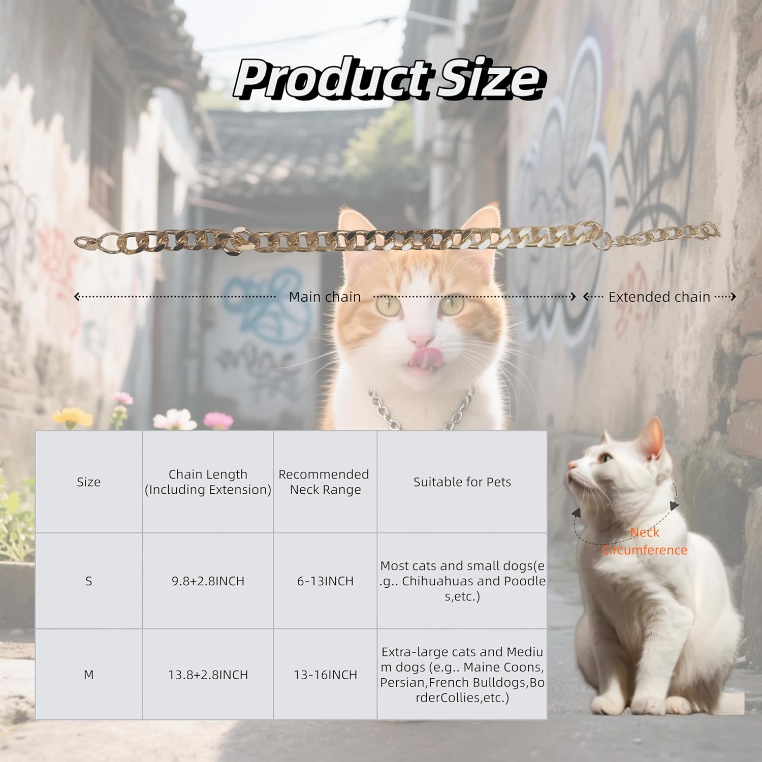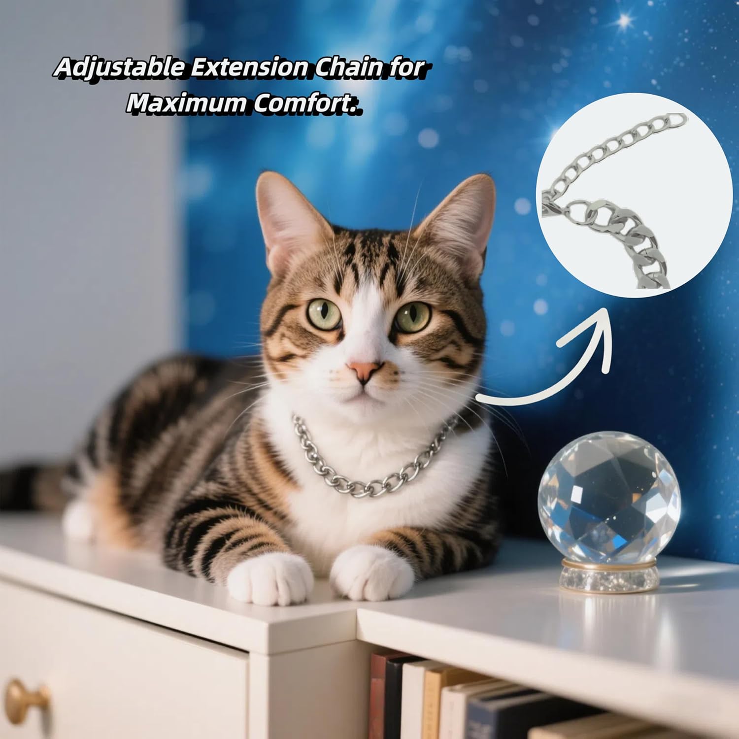 Adjustable for the Perfect Size: Features a convenient extension chain to easily adjust the length, providing a secure and customized fit for cats of all sizes.