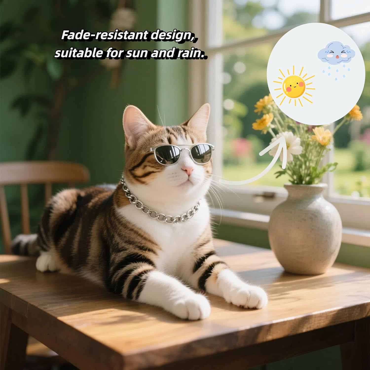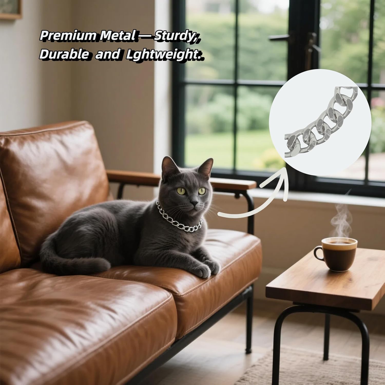 This collar has been such a charming accessory for my cat. The gold-chain style looks elegant and fun, giving a unique touch without feeling heavy. I appreciate that itâs lightweight and comfortable, allowing my cat to wear it throughout the day without any discomfort. Itâs also adjustable, making it easy to achieve the perfect fit.The material feels durable and high-quality, which is great for an active pet. Itâs perfect for photos or adding a stylish touch on special occasions. Despite its bold appearance, itâs safe and gentle, causing no irritation. Overall, a stylish, sturdy, and adorable accessory, ideal for pet owners who want something cute and fashionable for their furry friend.