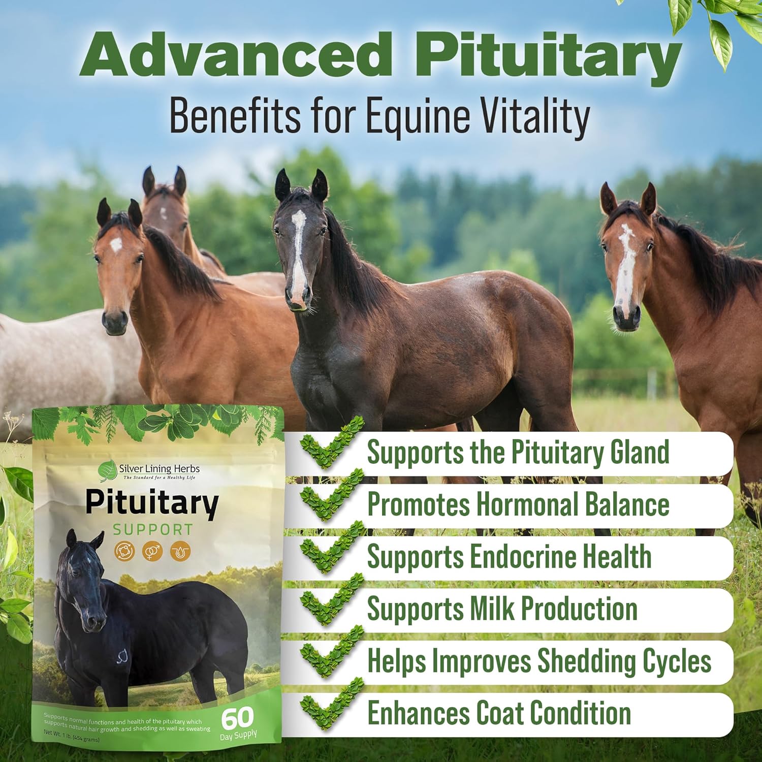 Silver Lining Herbs Pituitary Gland Supplements for Horses – Horse Supplements for Equine Metabolic Support, Cushing’s, Sweating & Shedding Issues – Mood & Energy Horse Supplement – 1 lb 60-Day Supply