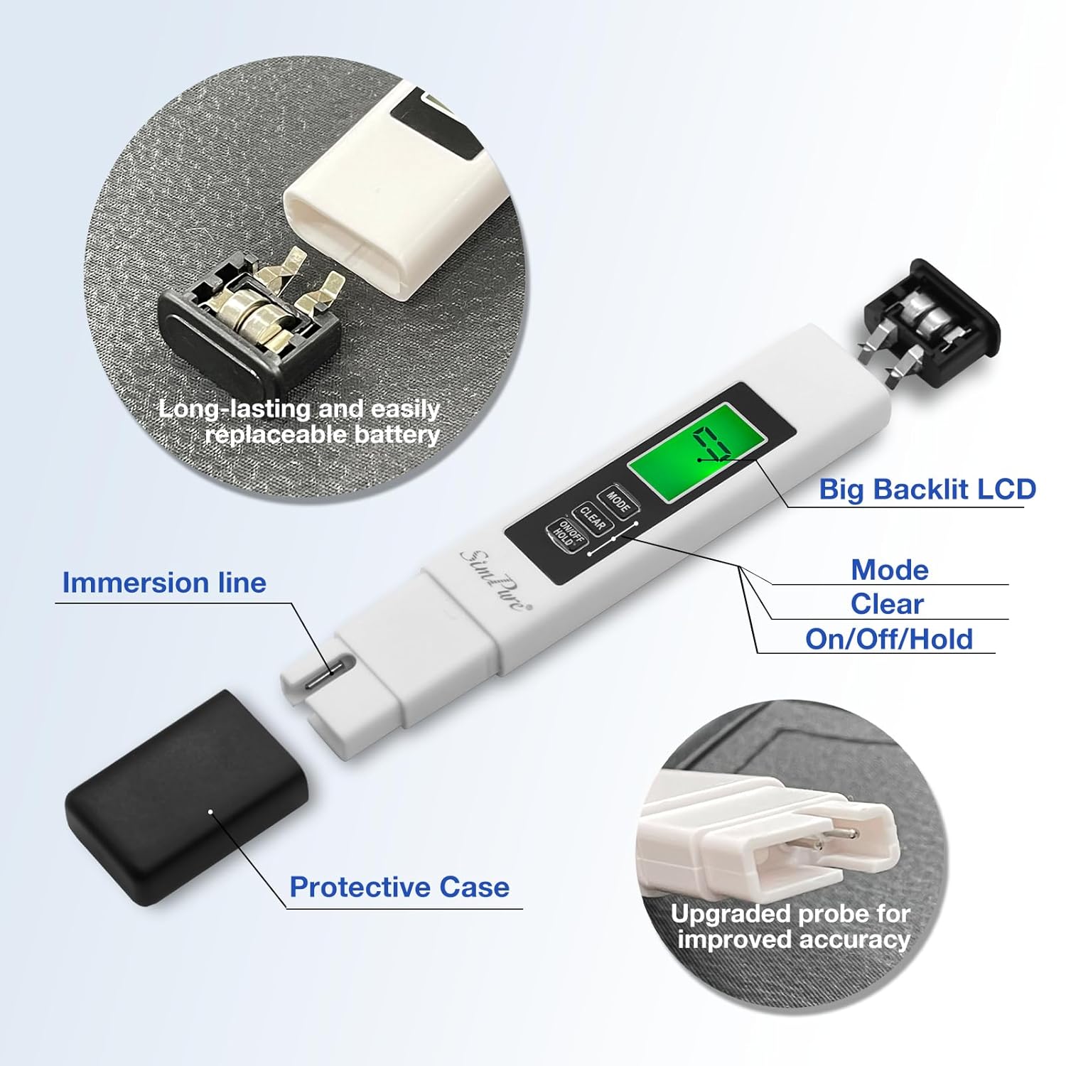 Application: The water quality tester is ideal for SimPure T1-400 / Q3-600 reverse osmosis systems, home drinking water, aquarium, swimming pool, well water, tap water, hydroponics, etc