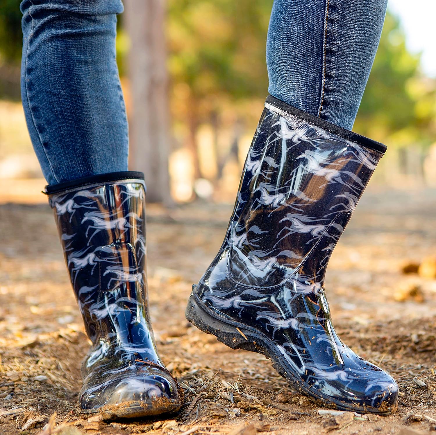 9 reviews for Sloggers Waterproof Garden Rain Boots for Women – Cute Mid-Calf Mud & Muck Boots with Premium Comfort Support Insole, (Flying Horses Black), (Size 9)