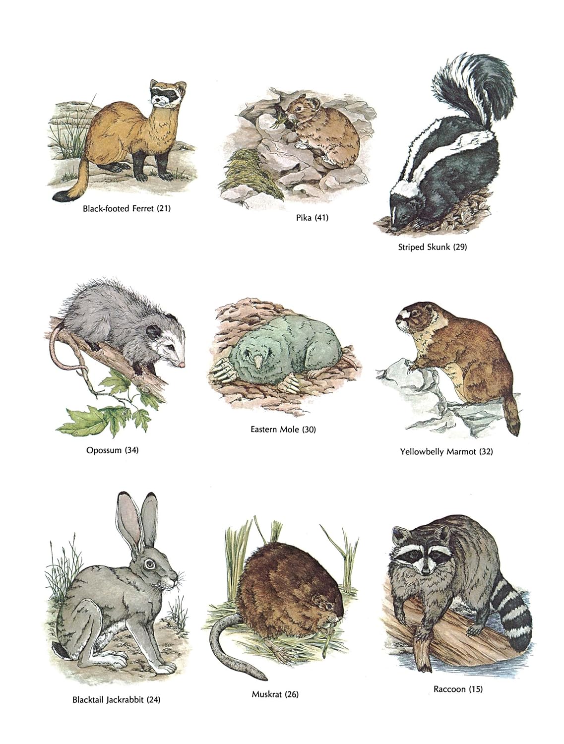 The smaller North American mammals are so populous and common, so familiar that the average animal lover overlooks them or fails to distinguish among them. How easy to confuse the Thirteen-lined Ground Squirrel with the Least Chipmunk; or mistake a Mink for its Weasel cousin, or a Marten for a Black-footed Ferret. The remedy is observation and instruction — all provided by this coloring book. Here are 46 species of mammals common to North America (including Canada and Mexico), rendered for coloring by Elizabeth McClelland, a specialist in zoological and botanical art. Each animal, from the armadillo, badger, bobcat, kit fox, kangaroo rat, and raccoon to pika, peccary, and yellowbelly marmot, is pictured in its environment with coloring information in the captions; some 25 animals appear in full color on the covers. Captions also include scientific name, family classification, size, range, and other remarks.