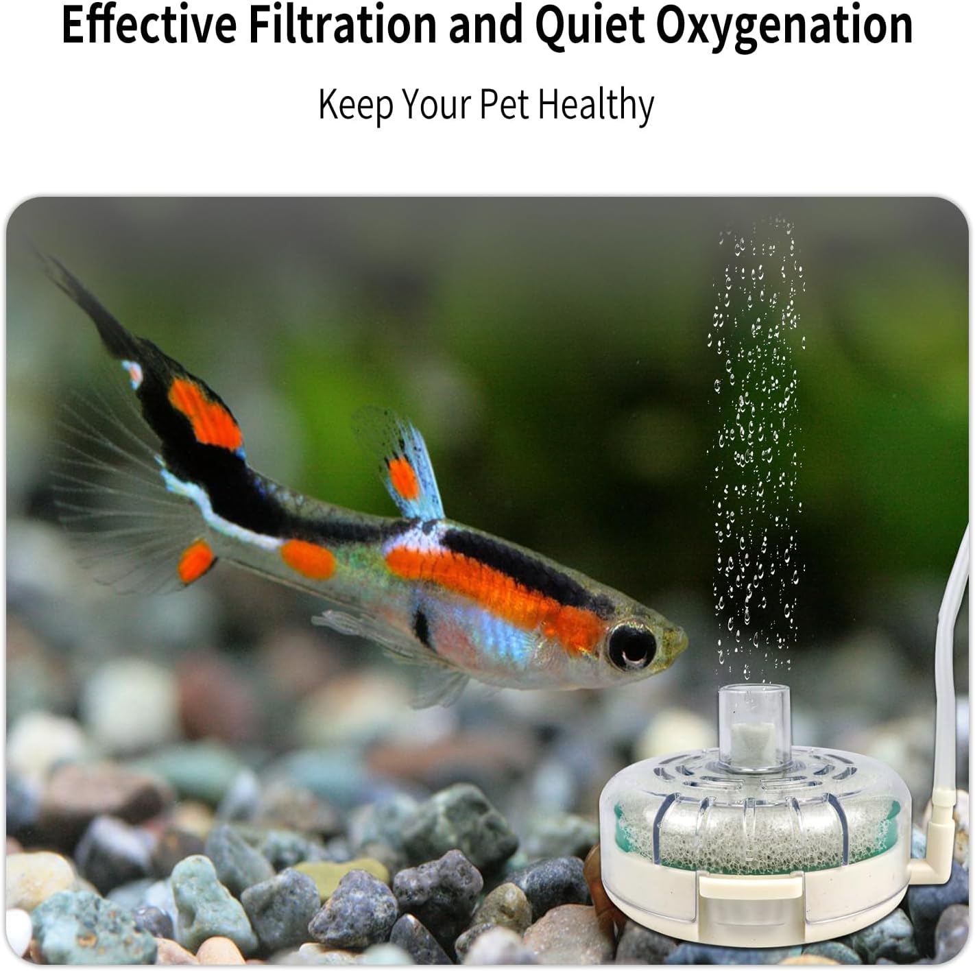 【Efficient 3-Stage Filtration System】Combines mechanical and biological filtration to remove debris, toxins, and odors, ensuring crystal-clear water and a healthy habitat for fish in tanks up to 5 gallons.