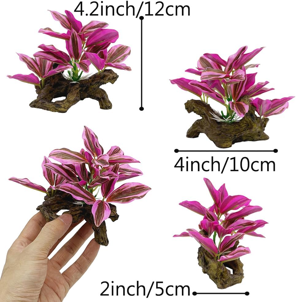 Smoothedo-Pets Fish Tank Decorations Aquarium Decor Ornaments Betta Pink Leaf pad Hammock Artifical Driftwood Goldfish Bowl Accessories (Hot Pink Set)