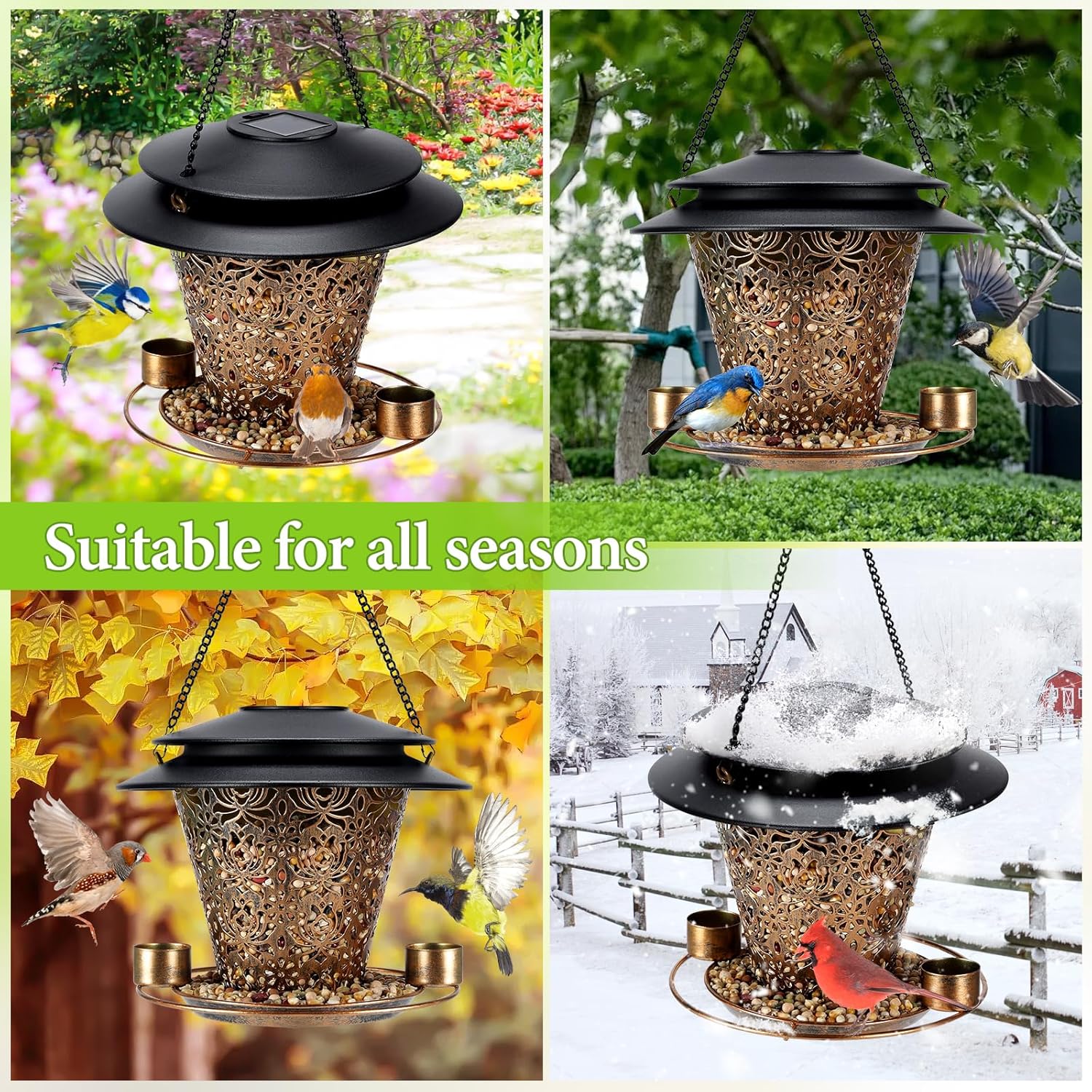 10 reviews for Solar Bird Feeders for Outside Hanging Metal Wild Bird Feeder Solar Lanterns Outdoor Waterproof Garden Decor for Yard Brown