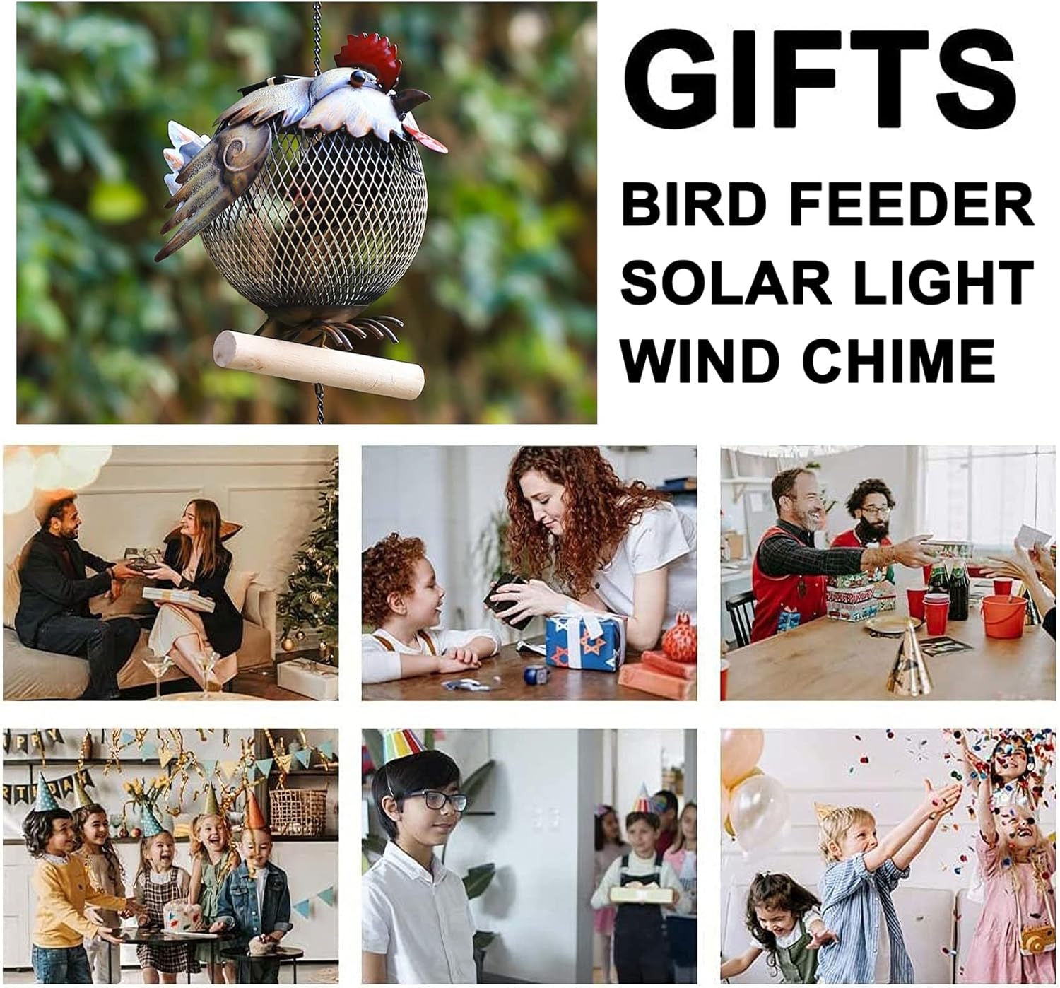 9 reviews for Solar Rooster Bird Feeder Squirrel Proof for Outside – Unique Cute Metal Animal Shaped Wild Bird Feeder with Solar Light, Wind Chime, Gift for Bird Lovers(Rooster)