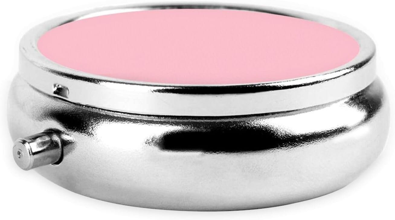 Solid color pink Stay organized and stylish with this Round Pill Box – a portable medicine storage container perfect for vitamins, supplements, fish oil, and more. Designed with a full-print exterior, this pill box is not just functional but also a fashionable addition to your daily routine. Made from durable electroplated metal iron, it offers a premium feel and long-lasting performance.