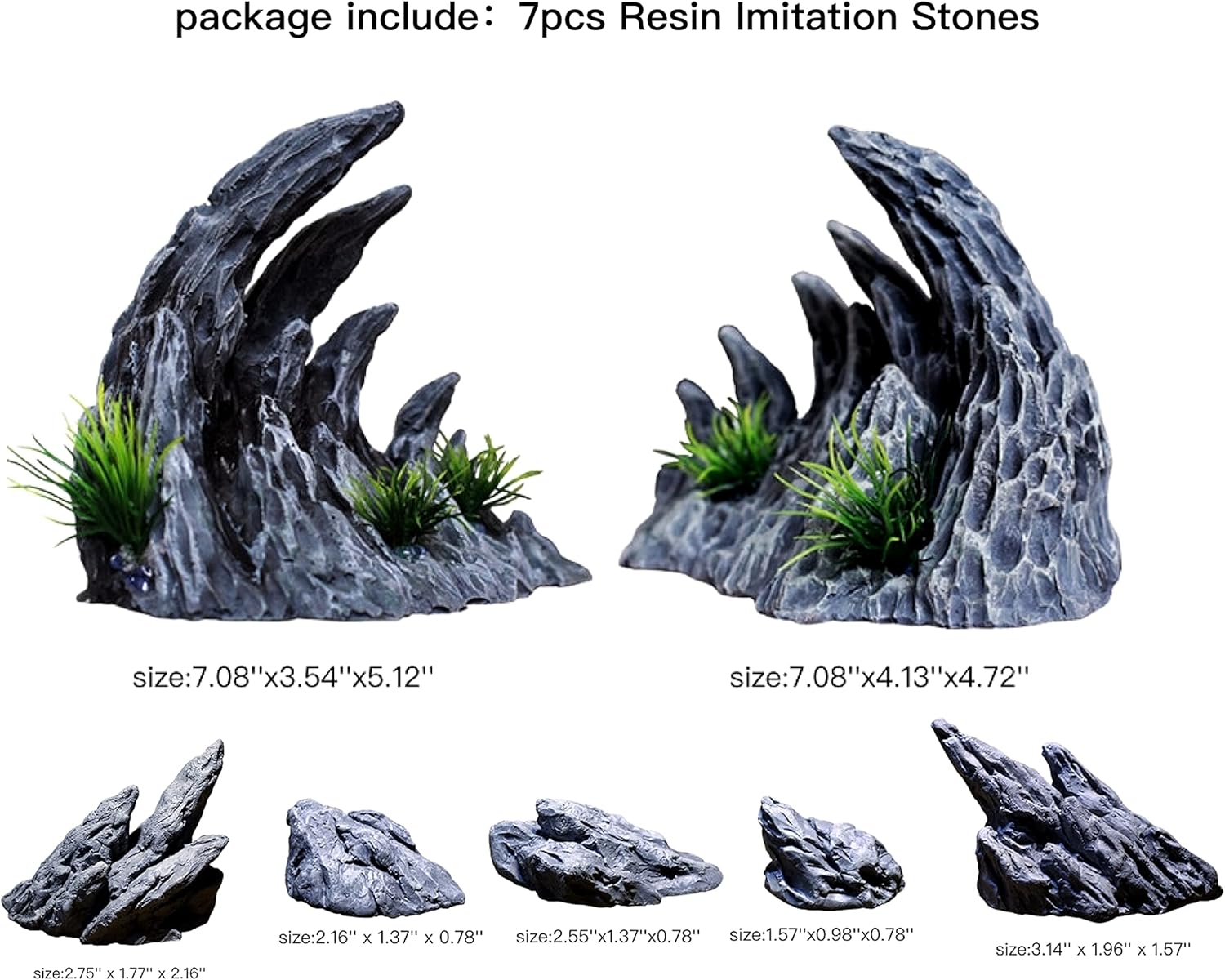 【package include】aquarium rock decorations include 7 parts Resin imitation stone, 2 pcs large 7 x 4 x 4.7 and 5 small stone. suitable for the of 10-20 gallon aquarium or standard scale of 12 – 20 inch aquarium