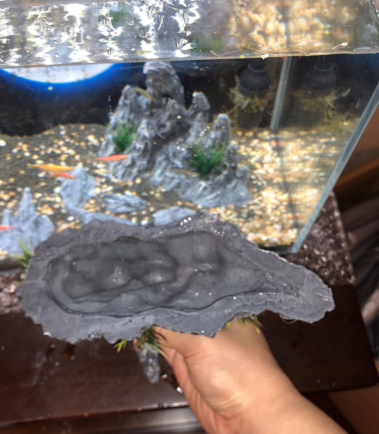 【Please note that】The bottom of the fish tank decorative stone is hollow, don’t worry, it can easily sink into the water.