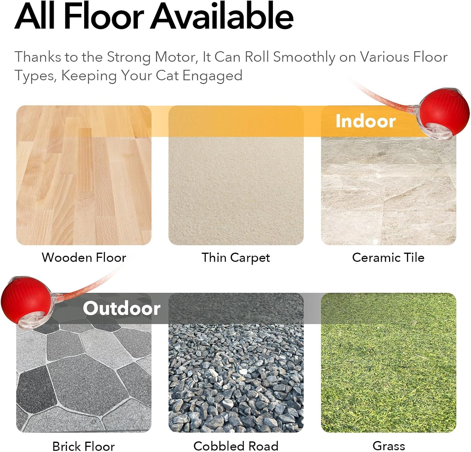 Powerful Motor Performance: Designed to roll smoothly on various floor types, thanks to its strong motor, keeping your cat engaged