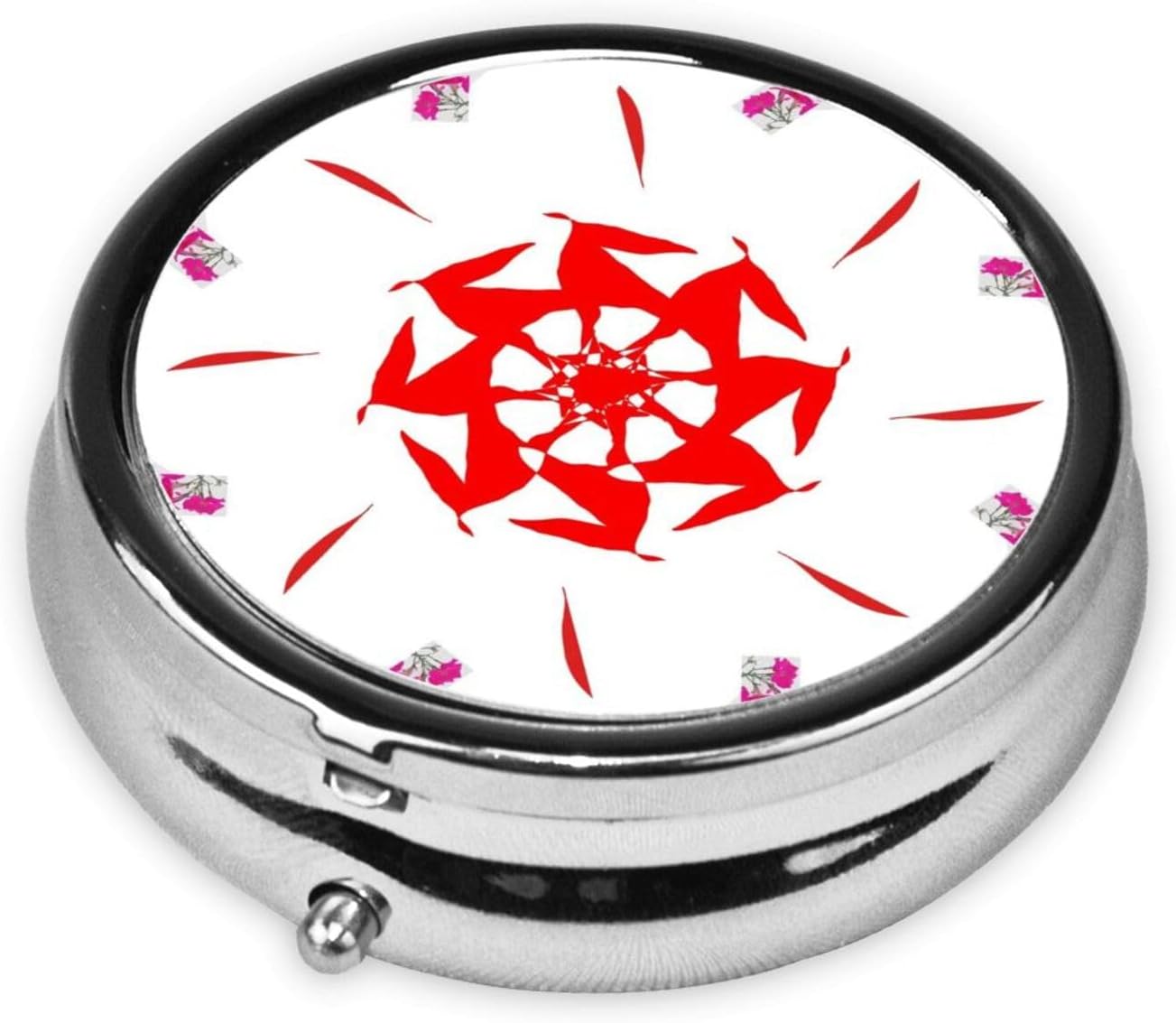 Spinning flowers Stay organized and stylish with this Round Pill Box – a portable medicine storage container perfect for vitamins, supplements, fish oil, and more. Designed with a full-print exterior, this pill box is not just functional but also a fashionable addition to your daily routine. Made from durable electroplated metal iron, it offers a premium feel and long-lasting performance.