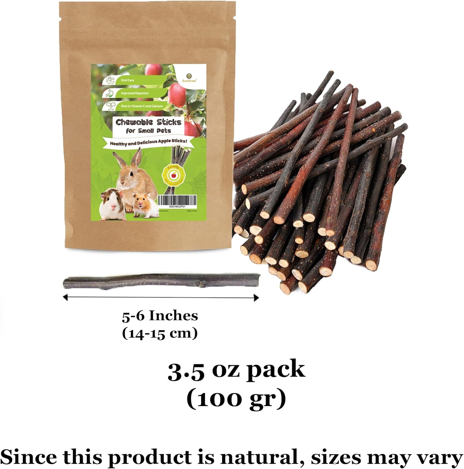 SunGrow Apple Sticks, Wood Chew Treats for Rabbits, Chinchillas, Bunny, Hamster, Squirrel, Guinea Pigs, Small Animals Teeth Grinding 100g (3.5 oz)