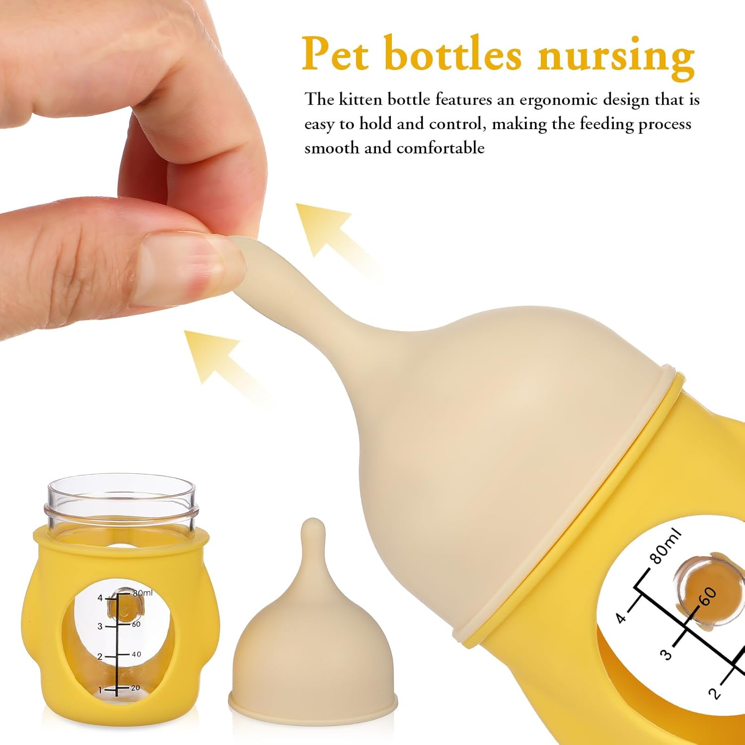 Optimal Size for Newborns: This 80ml nursing bottle is perfect for feeding newborn puppies and kittens, providing the right amount of milk for small pets