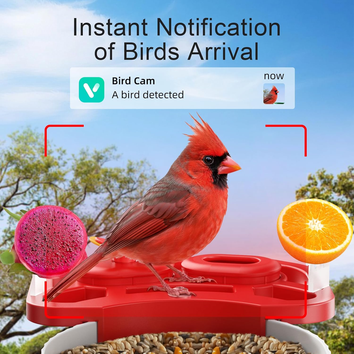 8 reviews for SV3C Bird Feeder with Camera, Smart Bird Feeder Camera with AI Identify BirdSpecies, Solar Powered, Instant Alerts, 2K HD Video, Various DIY Addons, 2.4G WiFi, Gift for Mom Dad and Birdlover (Red)