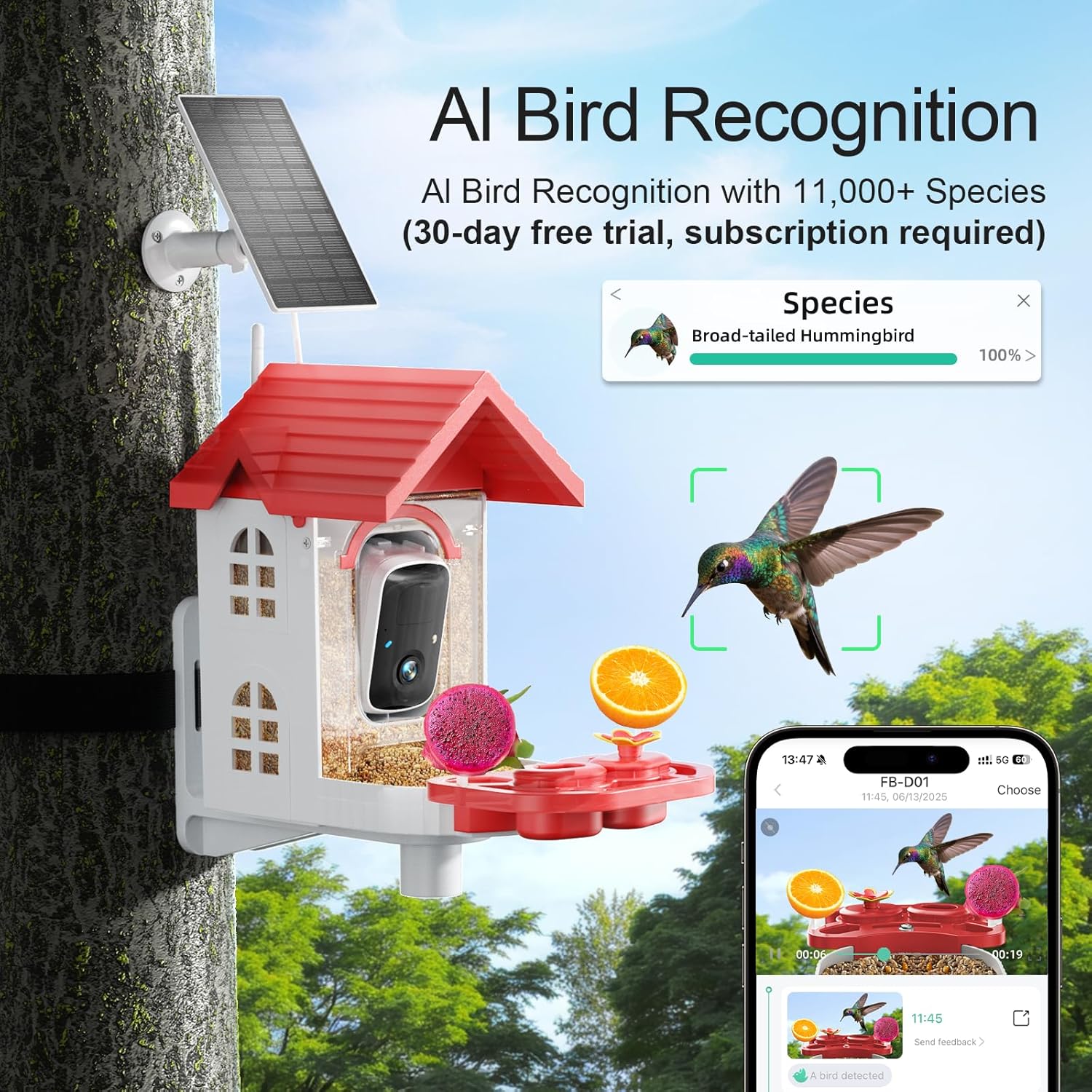 【AI Identify 11000+ Birds】Tired of flipping through field guides or squinting at blurry bird pics? Meet the world’s AI-powered bird feeder—your effortless ticket to becoming a backyard birding expert! This smart bird feeder camera can identify over 11,000 bird species. (Subscription Required; 30-Day Trial Included). You’ll get to learn more about birds, becoming an expert in the species that visit your yard and attracting even more feathered friends to your garden.