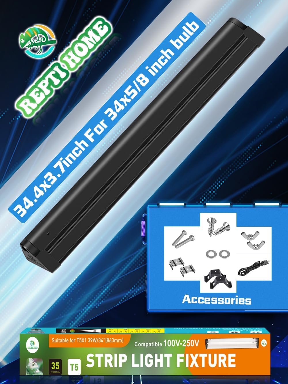 【MORE UVA UVB OUTPUT】- REPTI HOME T5 UVB Reptile Lighting Combo Kit including T5 10.0 UVB fluorescent tube and lamp fixture,We have used an exclusively developed alloy metal reflective layer, which can increase the spectral energy required for animals such as UVB and UVA output from the lamp tube by 200%. Additionally, we have used an alloy plate with a thickness of 0.3mm, which is not easy to age under ultraviolet light and remains bright as before
