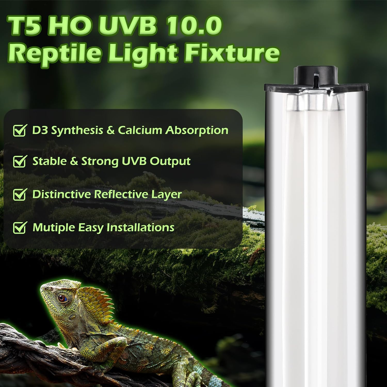 T5 UVB Reptile Light Fixture, UVA Light for Reptiles Bearded Dragon, 10.0 Bulb Therapy Terrarium Lamp Kit for Lizard Chameleon Gecko Turtle 8W