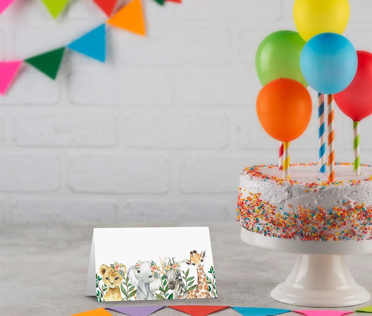 2 reviews for Table Place Card, Jungle Safari Animals Themed Tent Style Cards, Pack of 25 Half-Fold Reception Place Card, Wild Animal Food Labels, Perfect for Baby Shower, Birthday Party C03