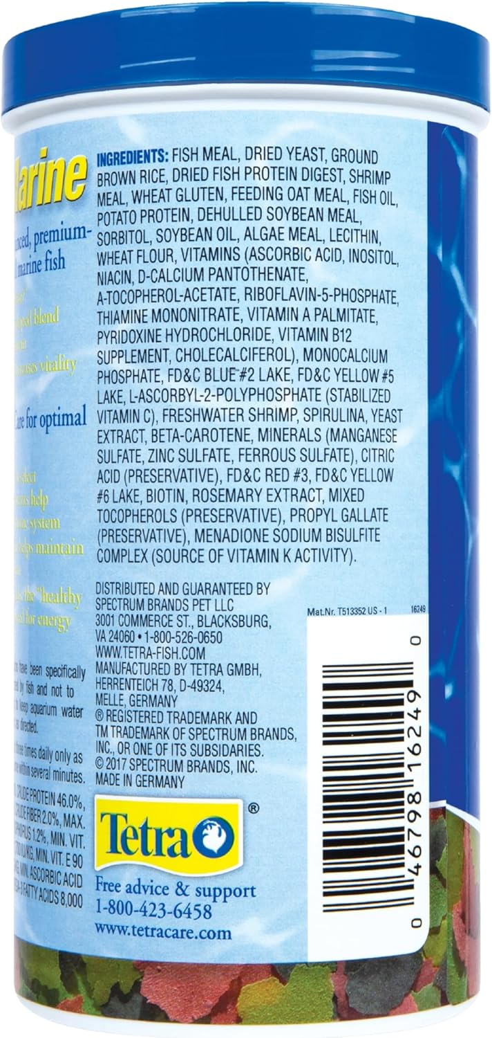 For 50 year, fishkeeping enthusiasts have looked to the Tetra name for products and solutions that add ease and beauty to their home. Whether you’re an experienced hobbyist or just starting out, Tetra has everything you need–from a large variety of quality fish food and innovative equipment to test kits and decor. TetraMarine Large Saltwater Flakes provide a premium quality, balanced diet for all marine fish. This flake blend does cloud water due to easy digestion and will not leach color into your aquarium water. Give your marine fish a food blend that enhances color, increases vitality and supports a long life for your fish. TetraMine Large Saltwater Flakes are also packed with ProCare for optimal health. Precise amounts of select vitamins and nutrients help support fish’s immune system, while biotin supplement helps maintain healthy metabolism. Omega-3 fatty acids give marine fish the “healthy fat” they need for energy and growth.