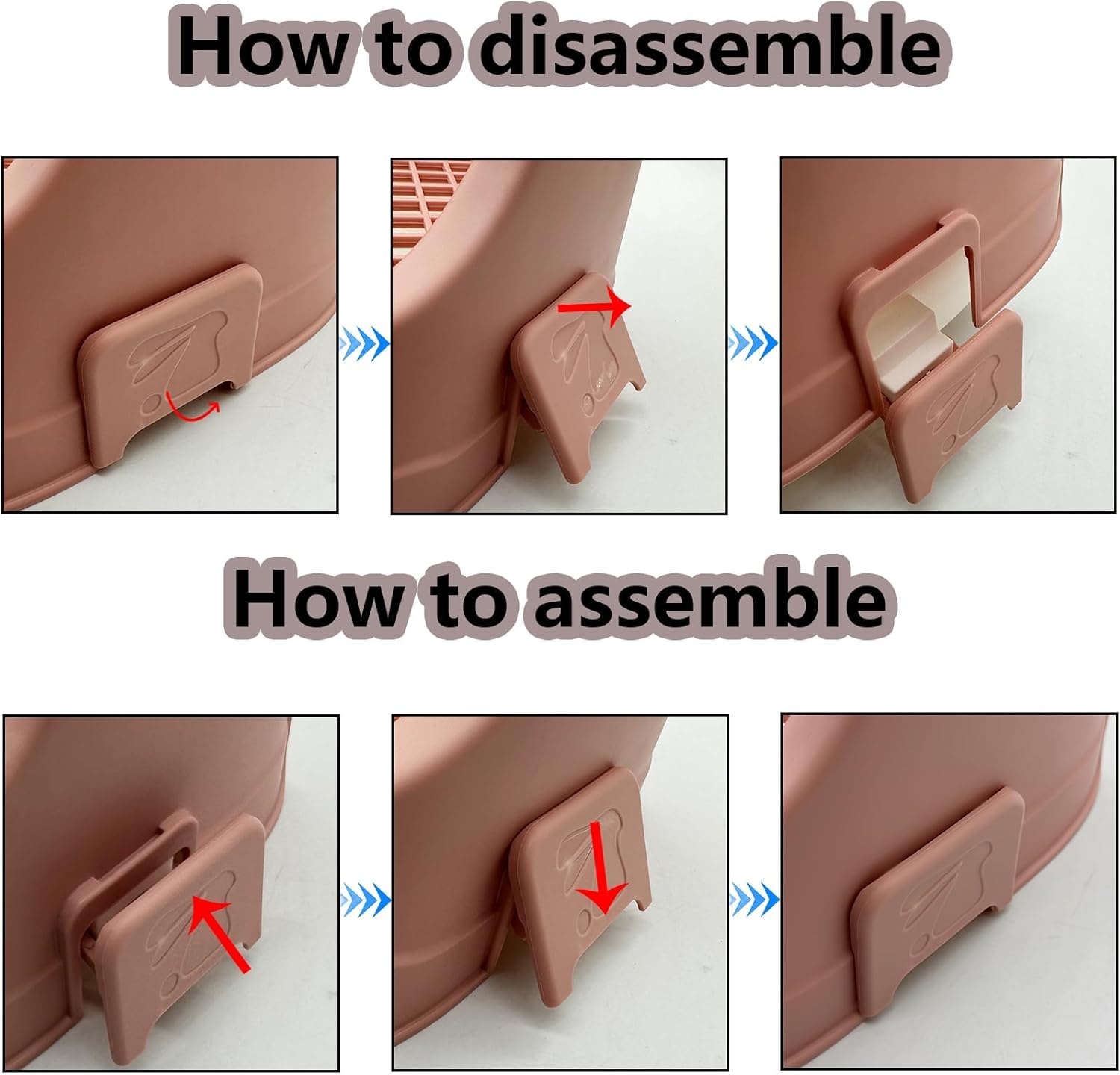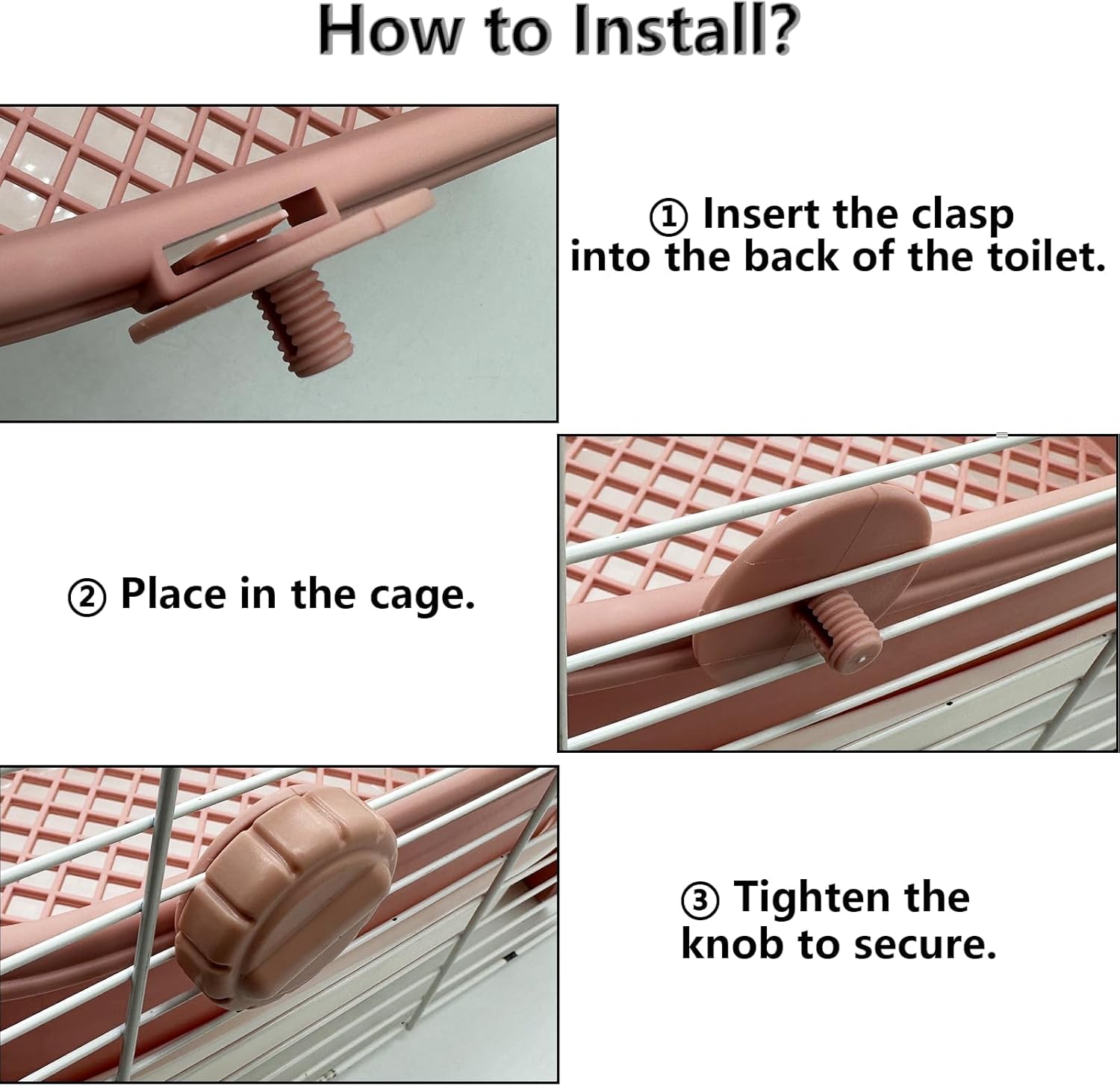【Thoughtful Design】 The guinea pig litter box features a fixed buckle design, securely attaching it to the cage to prevent it from being overturned by your pet. The fastener is easy to remove or install, providing convenience for both you and your furry friend.