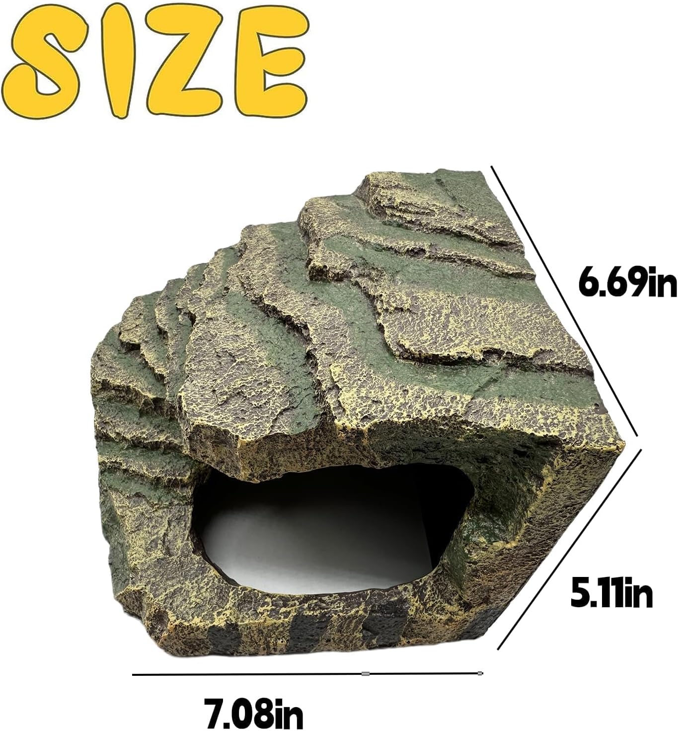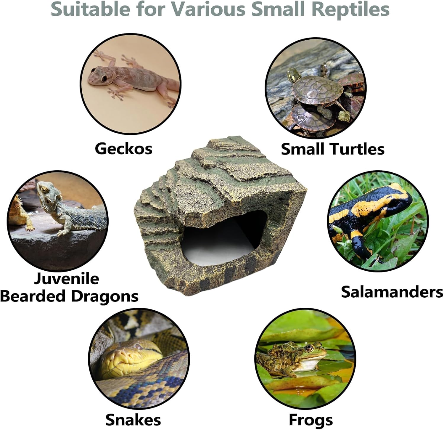 【Size】Measuring approximately 7 x 6.6 x 5.1 inches, our reptile cave hideout with basking area is suitable for a variety of small reptiles and amphibians,such as leopard geckos, crested geckos, juvenile bearded dragons, small turtles, frogs, salamanders.