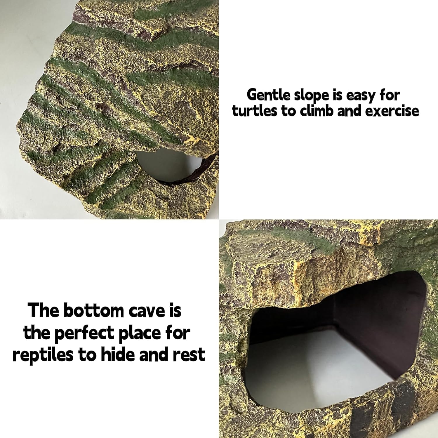 【Quality Material】Crafted from premium resin material, our turtle basking platform ensures the safety of your pets during use. The bearded dragon basking platform retains its shape and color over time, even when placed in both fresh water and saltwater habitats. With its sturdy construction and right angle design, the bearded dragon hide will not be easily overturned by your pet.