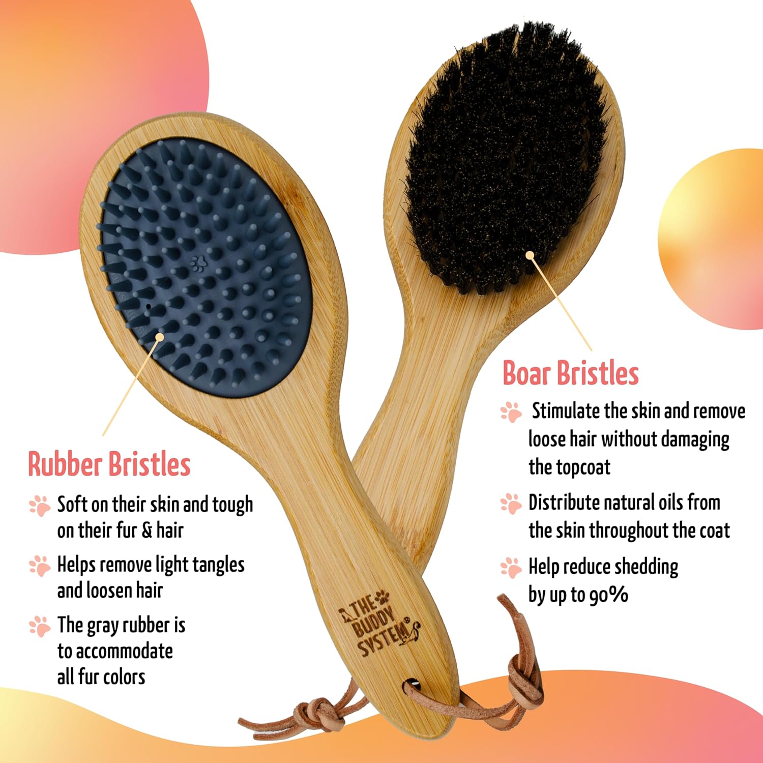 The Buddy System Combo Bristle Pet Brush, 2-in-1 Brush, Durable Rubber Side and Soft Boar Bristle Side – All Pets and Coat Lengths – Top Coat Massage for Cats & Dogs – 1 Pack