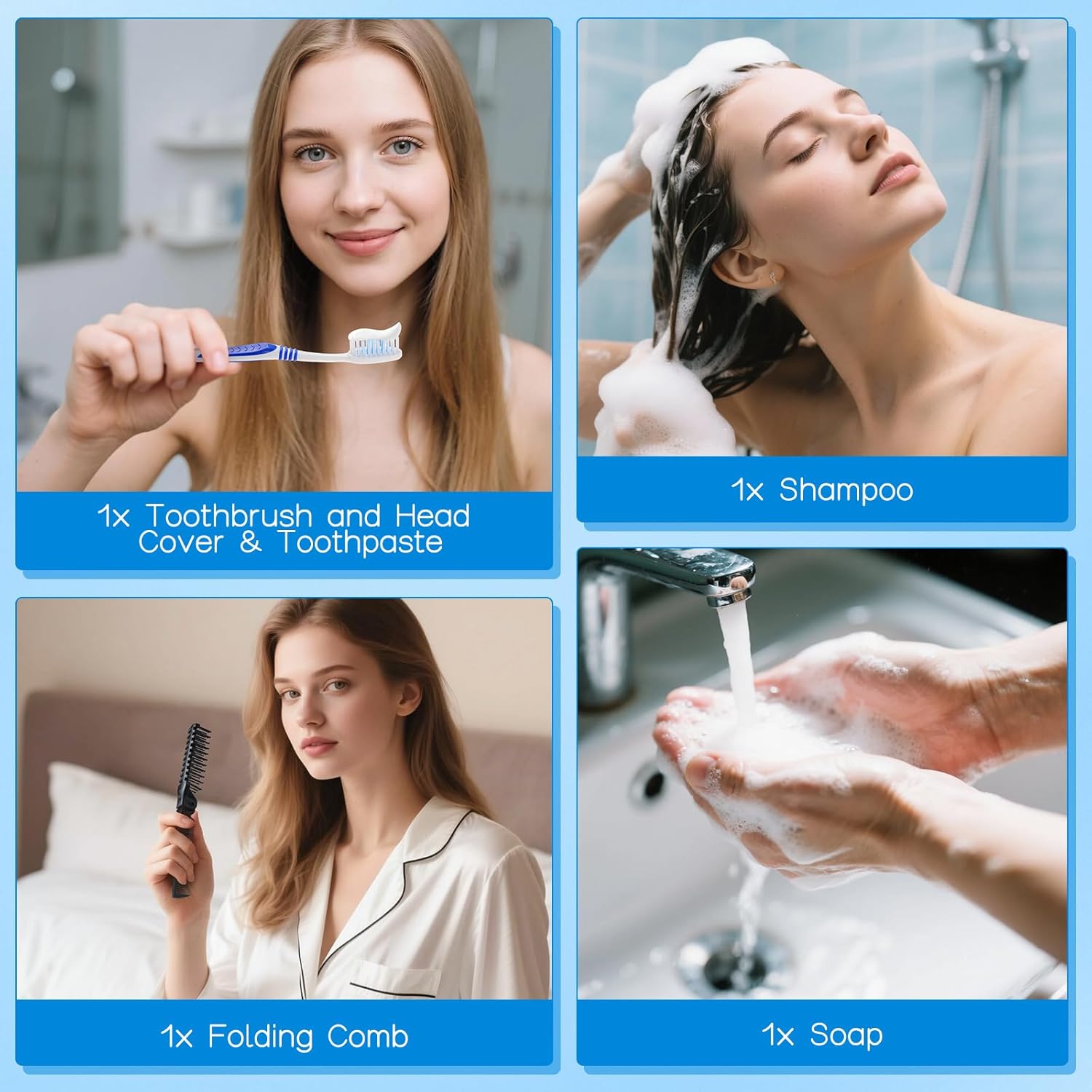 Individually Wrapped for Hygiene: Each toiletries item comes in individual wrapping, locking in freshness and preventing leaks, ensures your toiletries stay clean and hygiene, making them ideal for on-the-go traveling, hotel, camping or share with your guests and friends
