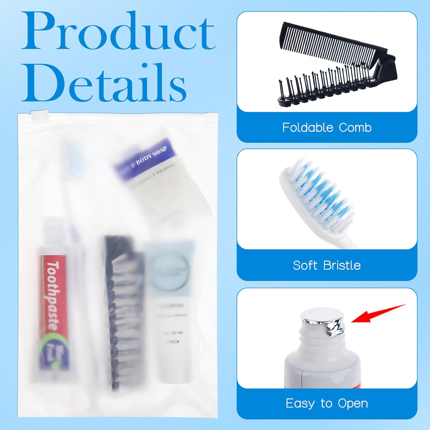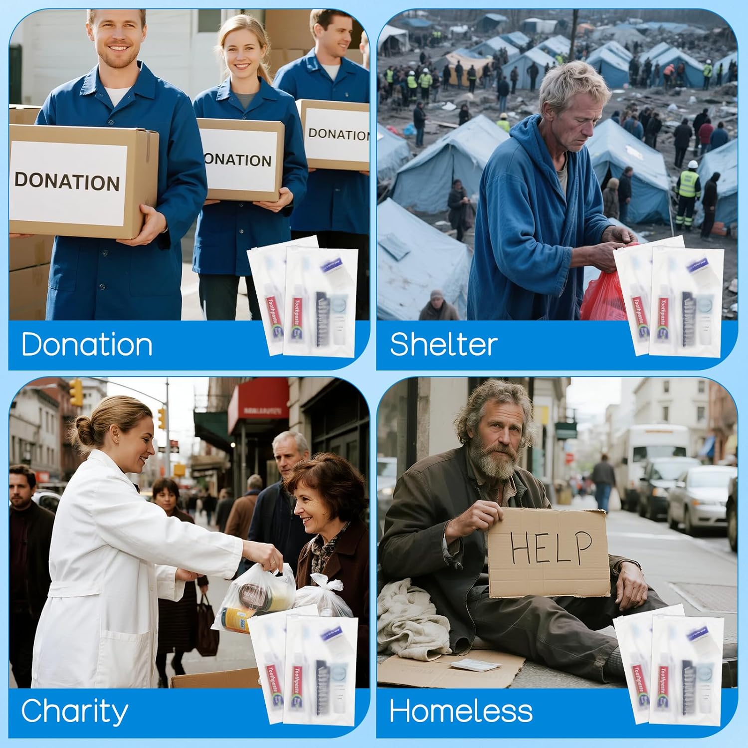 Perfect for Bulk Needs:These disposable hygiene supplies are available in bulk, these toiletry kits are a ideal choice for hotels, shelters, and charity events. They deliver essential personal care items to those in need, making them a practical and compassionate solution for relief efforts and community support