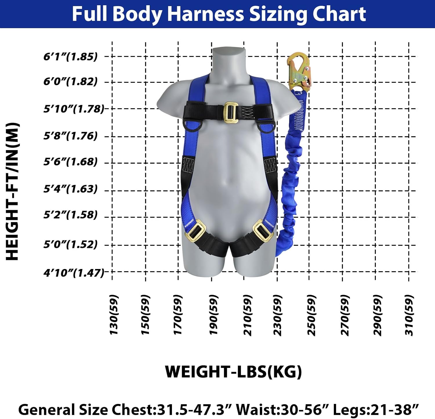 TRSMIMA Safety Harness Fall Protection – Full Body Construction Roofing Harness Kit Attached 6 ft Lanyard ANSI OSHA