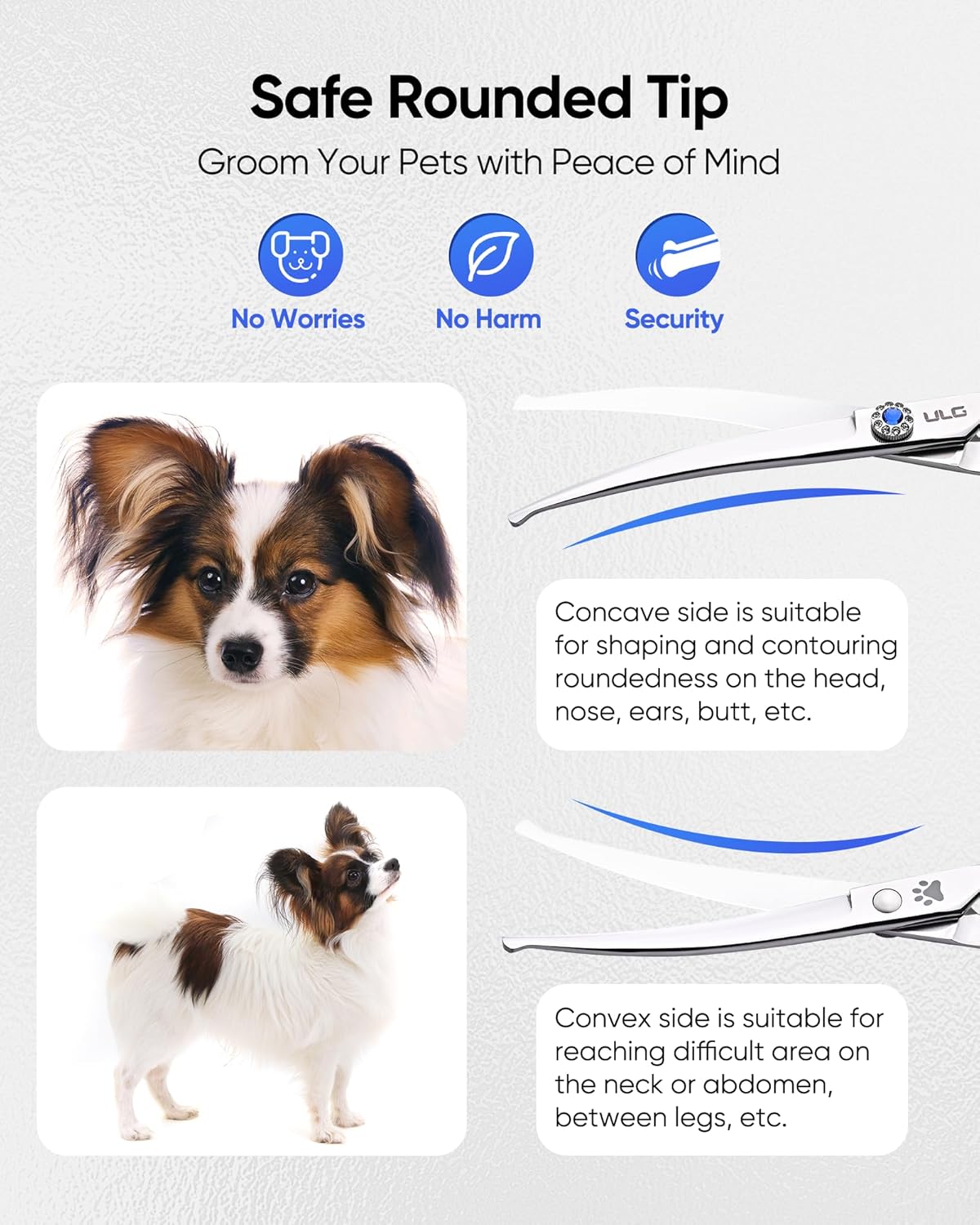 ULG Curved Thinner Dog Shears for Grooming – Ergonomic Dog Grooming Shears Sharp Curved Blender Dog Scissors for Grooming 440C Stainless Steel Grooming Scissors Professional Pet Shears