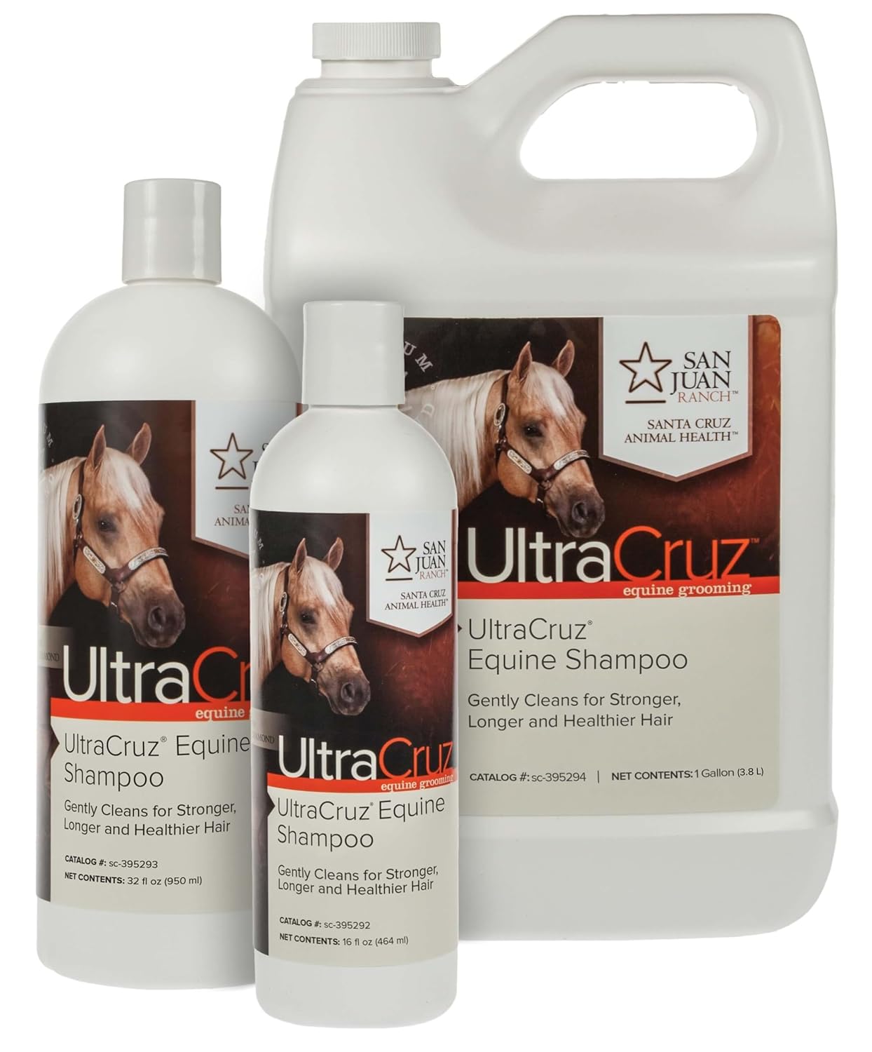 Ultra Cruz Equine Shampoo is a specially formulated blend of naturally based cleaning agents, enriched with proteins, vitamins, moisturizers and emollients to thoroughly clean hair without stripping natural oils. Produces a rich fragrant lather to remove dirt and debris from the coat, mane and tail for a soft and Shiny appearance. Ultra Cruz equine shampoo is pH balanced to provide optimum body, shine and manageability without causing irritation or dryness of the skin. Micronized proteins work together with moisturizing agents and vitamins to restore the natural protein-moisture balance to strengthen the hair, leading to long healthy shine. For silky and Shiny hair wash with Ultra Cruz equine shampoo, rinse, and then liberally apply Ultra Cruz equine Conditioner.