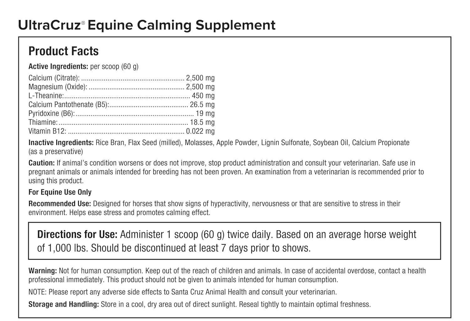 UltraCruz – sc-395986 Equine Calming Supplement for Horses, 6 lb, Pellet (20 Day Supply)