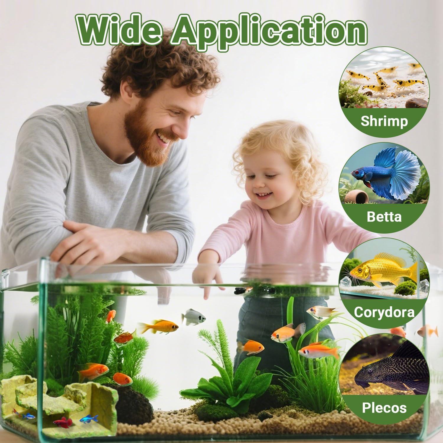 Dual-Hole Cave for Shrimp, Betta & Pleco:A secure hideout for shrimp molting, bettas resting, and plecos exploring! Install easily: move substrate, place against glass, refill—no tools. Stays put without floating.