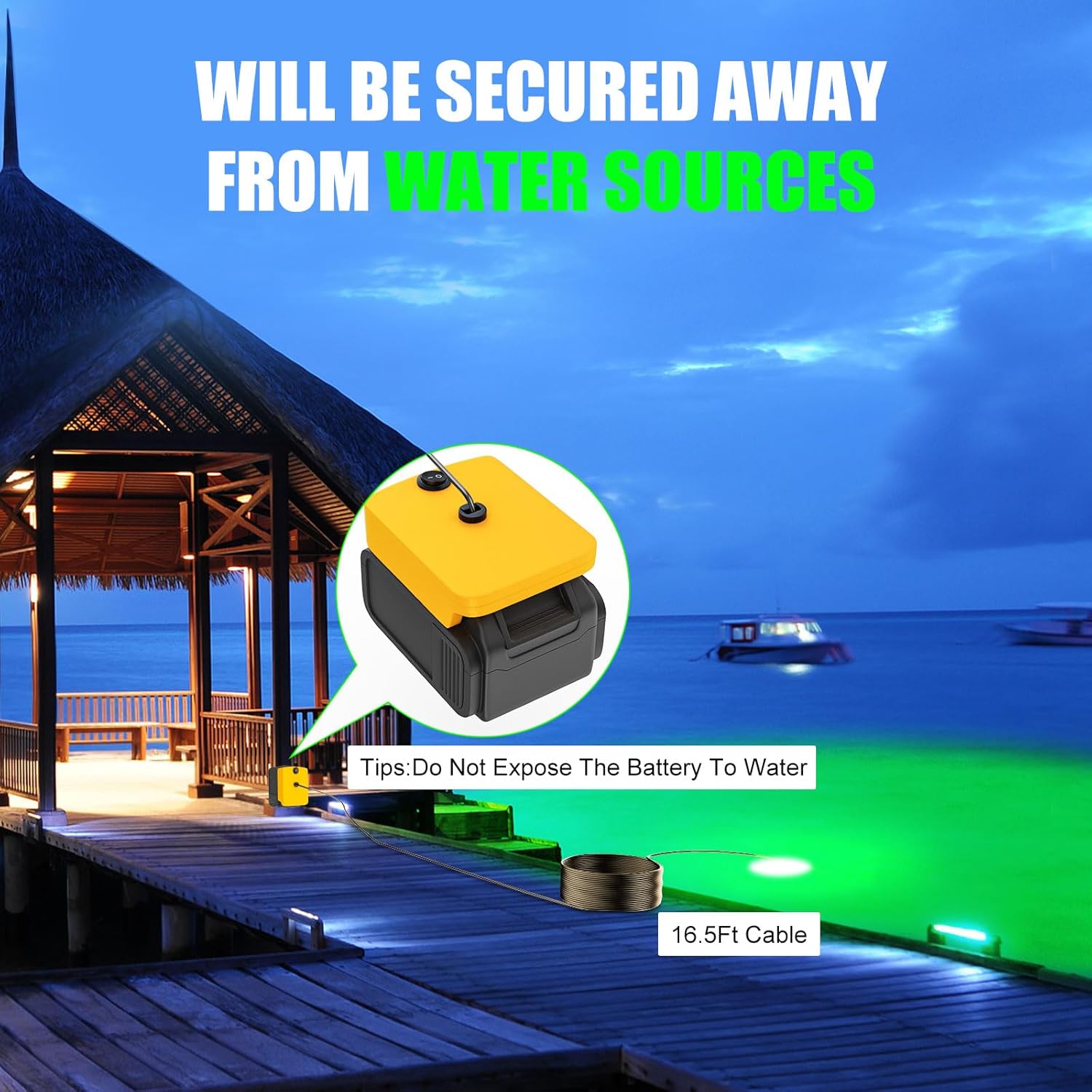 New Design Portable Underwater Fishing Light:LED Green Light Compatible For 20V Battery,Plug In Your Batteries Compatible For DCB204 DCB206 DCB184 DCB609 DCB606, Etc (No Battery), Drop-In, Reel-In,This Portable Lighting Kit Will Increase Your Chances Of Reeling In The Best Fish.
